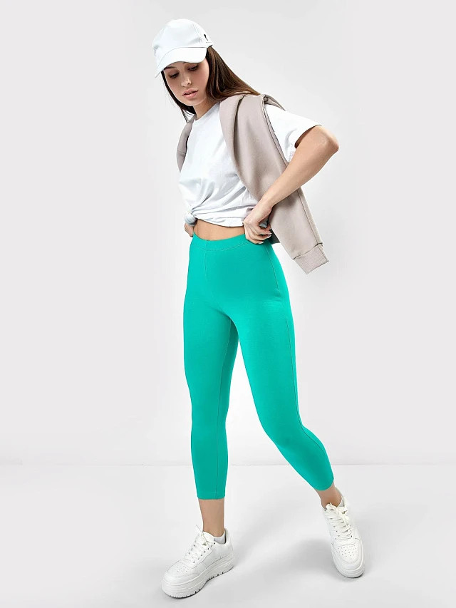 Ношу 50-52 размер, купила 52, свободны на мне, можно было и 50 взять. В целом хорошие леггинсы, красивый, яркий цвет, довольно плотный, хорошо тянущийся трикотаж.