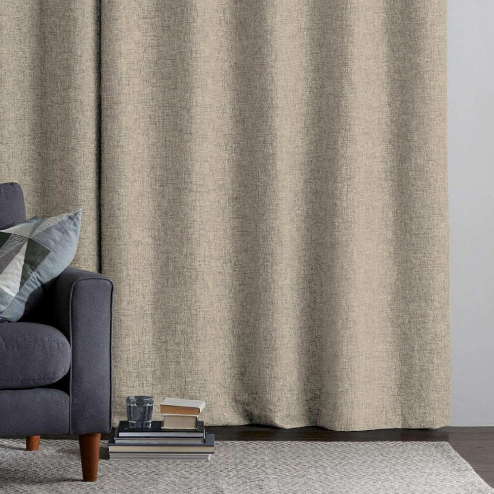 Купила 2 комплекта штор песочного цвета и кофе. Получилось, как я и задумала. Немного грубоватая ткань. Хорошо держит форму. Я довольна.
