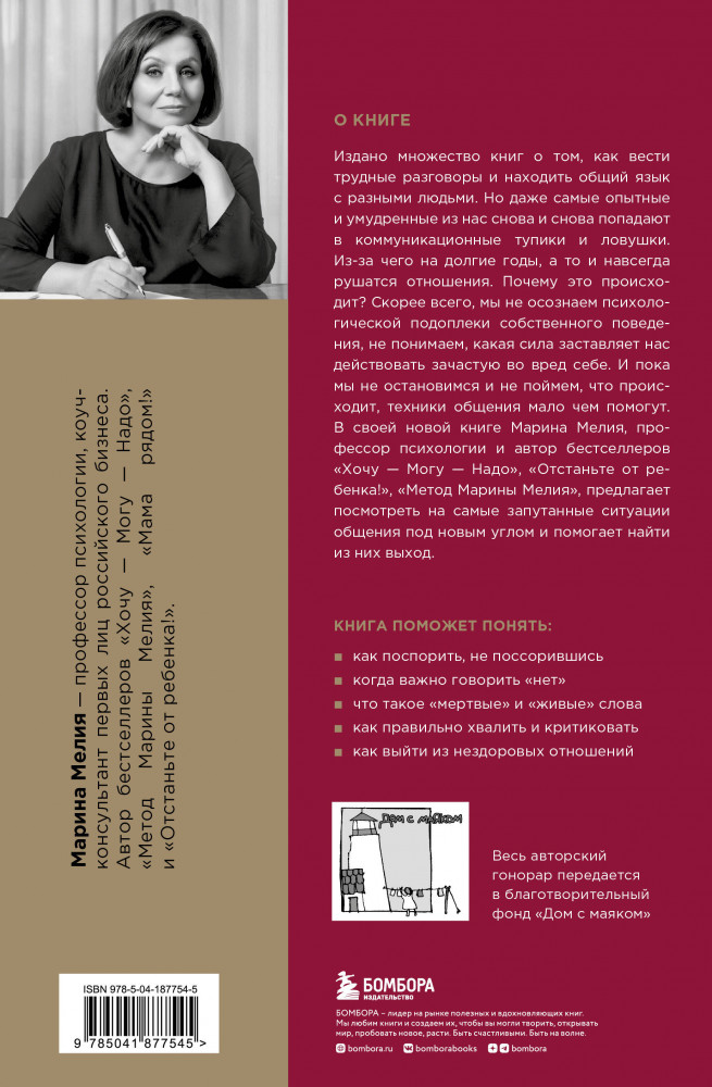💳 Оплатить за товар можно при получении 🇰🇿 Есть бесплатная доставка по Казахстану от 1 дня 🎁 Копите бонусы с каждой покупки Серия: Марина Мелия. Психология успеха Даже самые опытные из нас попадают в коммуникационные ловушки. Не важно, общаемся ли мы с деловым партнером или семьей, очень легко начать конфликт на пустом месте. Марина Мелия убеждена, что для эффективного общения и ведения сложных переговоров важно обратить внимание в первую очередь на психологические причины своего поведения. |