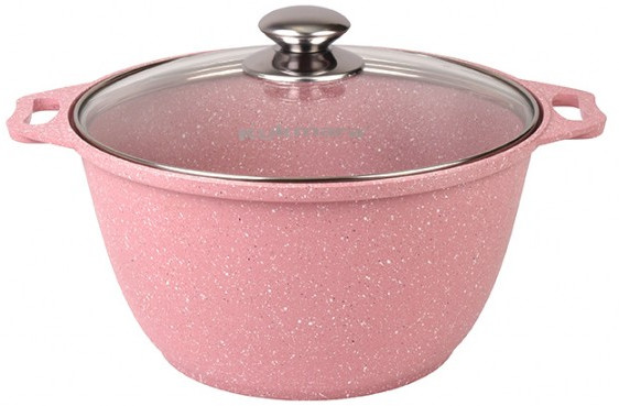 Маленькая и компактная кастрюля красивого нежного розового цвета.