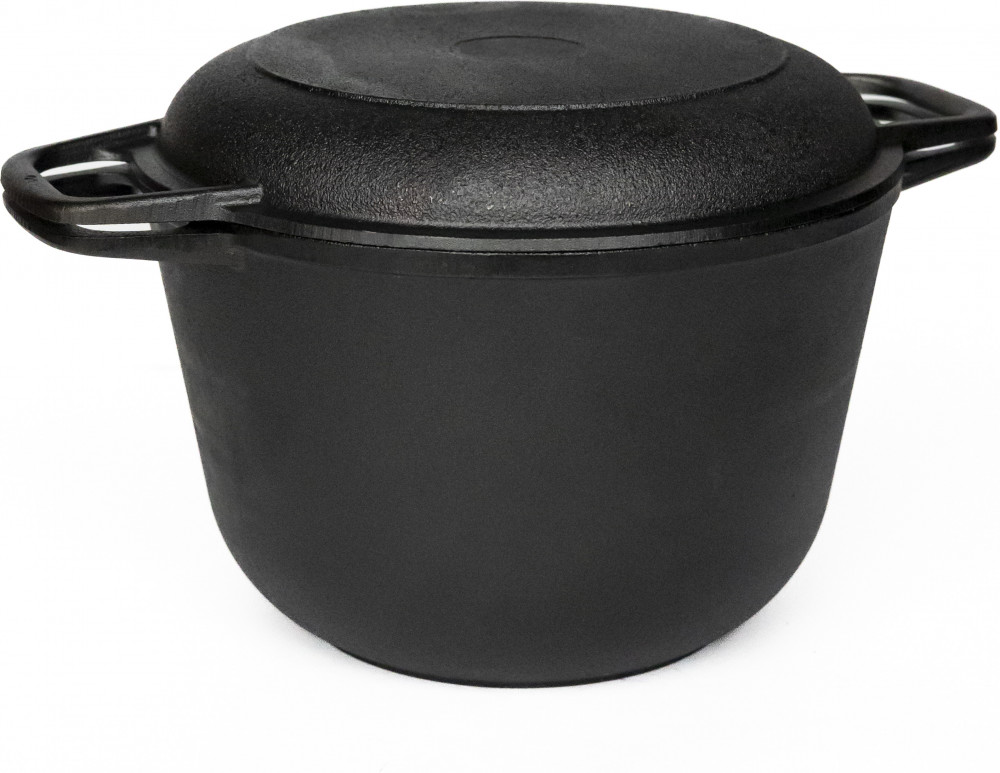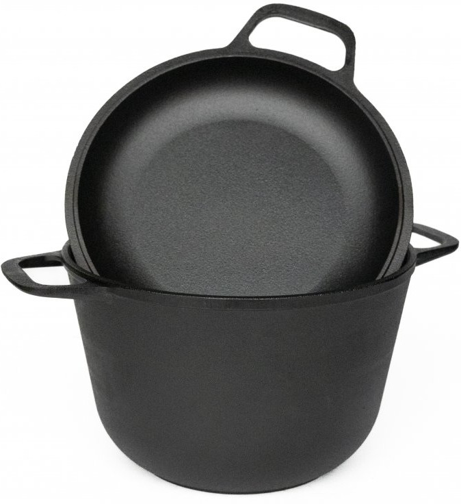 отличная кастрюлька, небольшой размер. очень порадовала крышка-сковородка, миниатюрная. как раз то что нужно для 1-3-х человек. универсальность прям зашкаливает: и дома на газу и в духовке и мясо запечь и хлеб испечь, и на костре в походных условиях тоже пригодится. главное не забывать правило пользования чугунной посудой. очень важен первый прожиг. и после использования и мытья просушивать на огне или тщательно вытирать сразу и сразу просматривать. тогда и ржаветь не будет и внешний вид хорошо сохранит и будет радовать практически бесконечно. уж сколько прошло различных алюминиевых сковородок в полевых условиях, лучше чугунной посуды не найти. чем приглянулась именно эта модель, это то, что используя на природе в костре или очаге можно выкладывать угли прям на крышку, что ускоряет процесс готовки и делает возможность запекания.