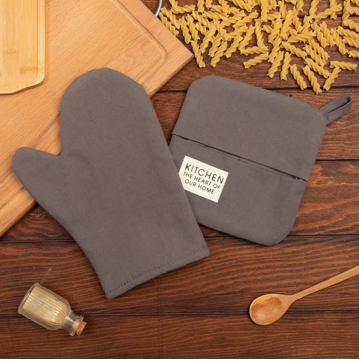 Нарядный кухонный набор — отличный подарок для хорошей хозяйки. В комплект входят прихватка и рукавица, которые защитят от ожогов, если нужно приготовить картошку-фри на кипящем масле, слить горячую воду из-под вареных овощей, достать раскаленные горшочки из духового шкафа.