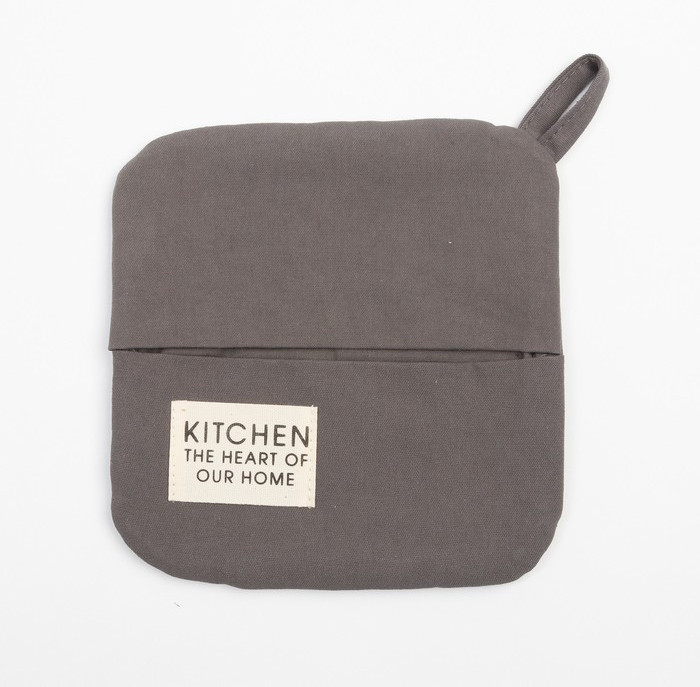 Удобная форма прихватки дает возможность быстро и без труда надеть ее одной рукой. Изделие способно защитить чувствительную кожу рук от горячих кастрюль и сковородок. На нижней части прихватки располагается удобная петелька, которая позволяет повесить ее на крючок, обеспечивая удобное хранение и экономию места на полках и в шкафу. Кухонный текстиль можно использовать каждый день для приготовления горячей еды или как украшение столовой, кухни, дачи или сада, загородного дома.