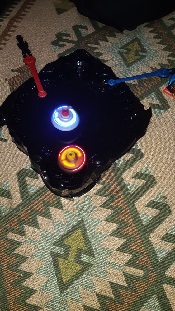 хороший набор, ребенок трёх лет играет. да, не забудьте купить мизинчиковые батарейки. в комплекте не идут. арена из тонкого пластика, немного надавить и треснет