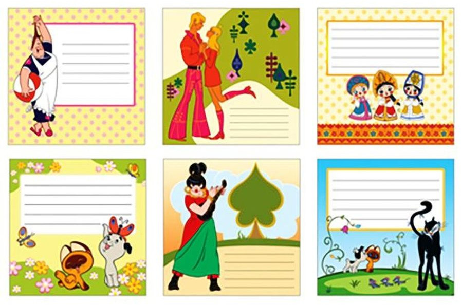 Комплект наклеек на тетради с персонажами из мультфильмов для девочек