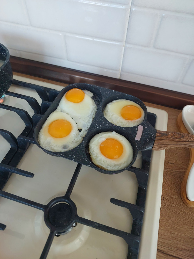 Думала, что сковородка побольше. Сковородка маленькая и лёгкая. Ничего не прилипает. Для разнообразия неплохо)