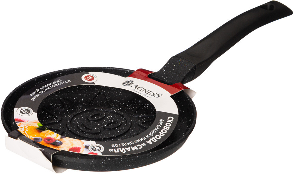 Готовьте с удовольствием в посуде бренда Agness! Сковороды Agness серии «Смайл» выполнены из литого алюминия. Такая посуда отличается высокой теплопроводностью и устойчивостью к деформациям. Необычный дизайн сковороды позволит приготовить интересные и веселые оладушки и омлеты.