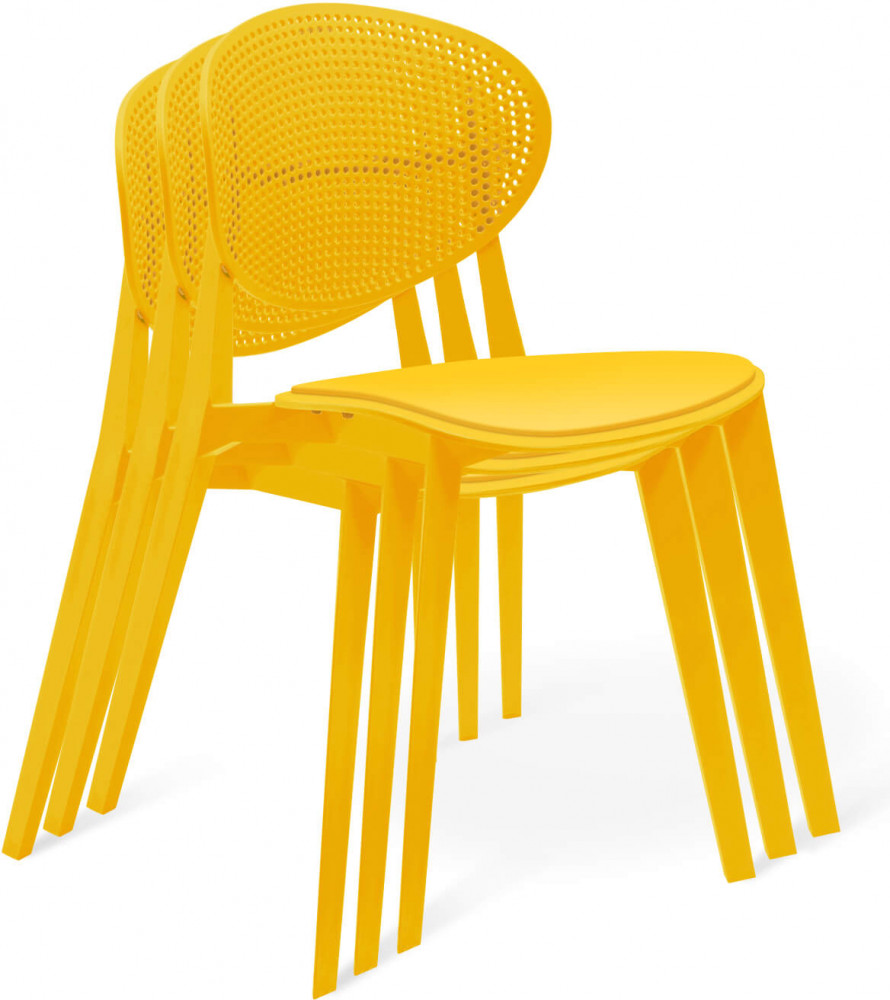 Стул выполнен из атмосферостойкого пластика. Устойчив к прямым солнечным лучам, не деформируется и не изменяет цвет. Можно использовать на открытом воздухе при температуре от −15°С до +40°С. Изогнутая спинка и широкое сидение обеспечивают удобную посадку и подарят новые ощущения комфорта во время отдыха. Штабелируется максимально по 5 штук, что значительно облегчает хранение и использование. С обратной стороны каждого стула, предусмотрена каучуковая защита, которая обеспечивает бережное штабелирование. Каучуковые подпятники каркаса обеспечивают защиту покрытия от царапин и повышают устойчивость стула.