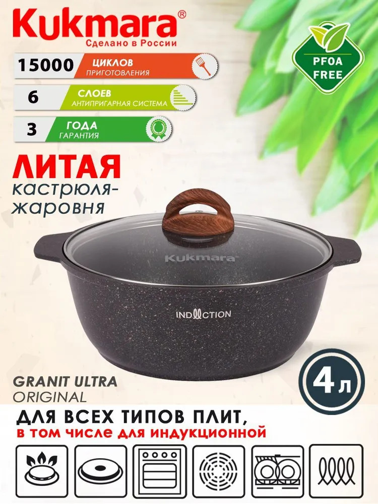 | Kukmara Кастрюля-жаровня с крышкой «Granit Ultra Induction»+649 (бонусов)