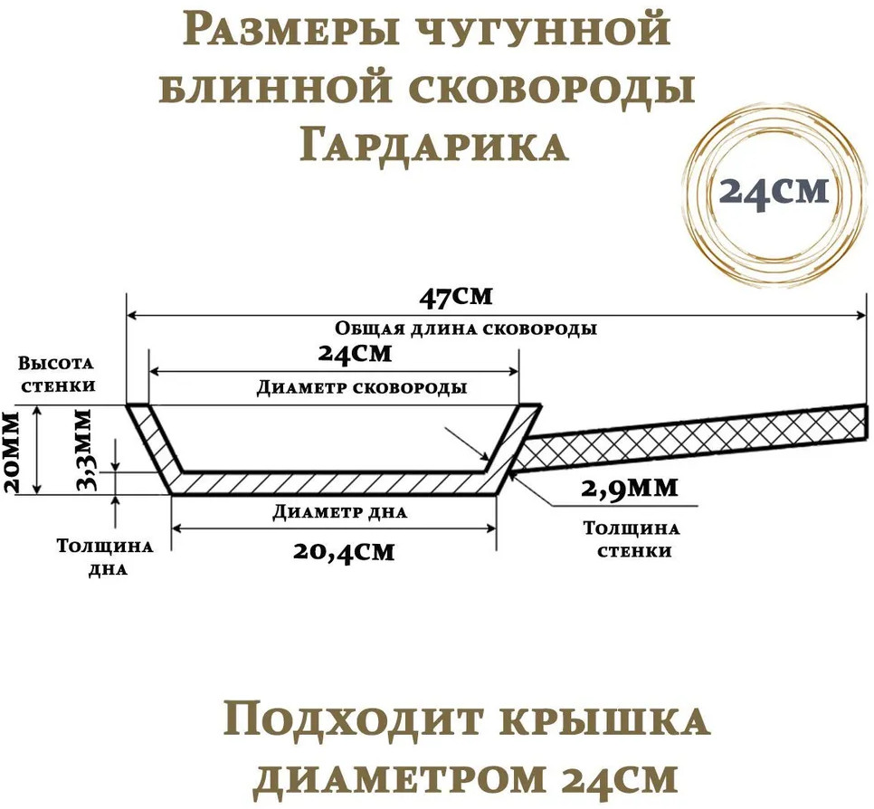 Обработала сковороду по инструкции, которая со сковородой идёт. Блины пекутся отлично, размер самый удобный. Вес сковороды 1030гр. Это не тяжело, как пишут. Хорошие блинные сковороды с покрытием тоже вес имеют около килограмма. Но чугун есть чугун: вкус блинов отличный, вид ажурный. Очень рада, что взяла. Спасибо flip за доставку