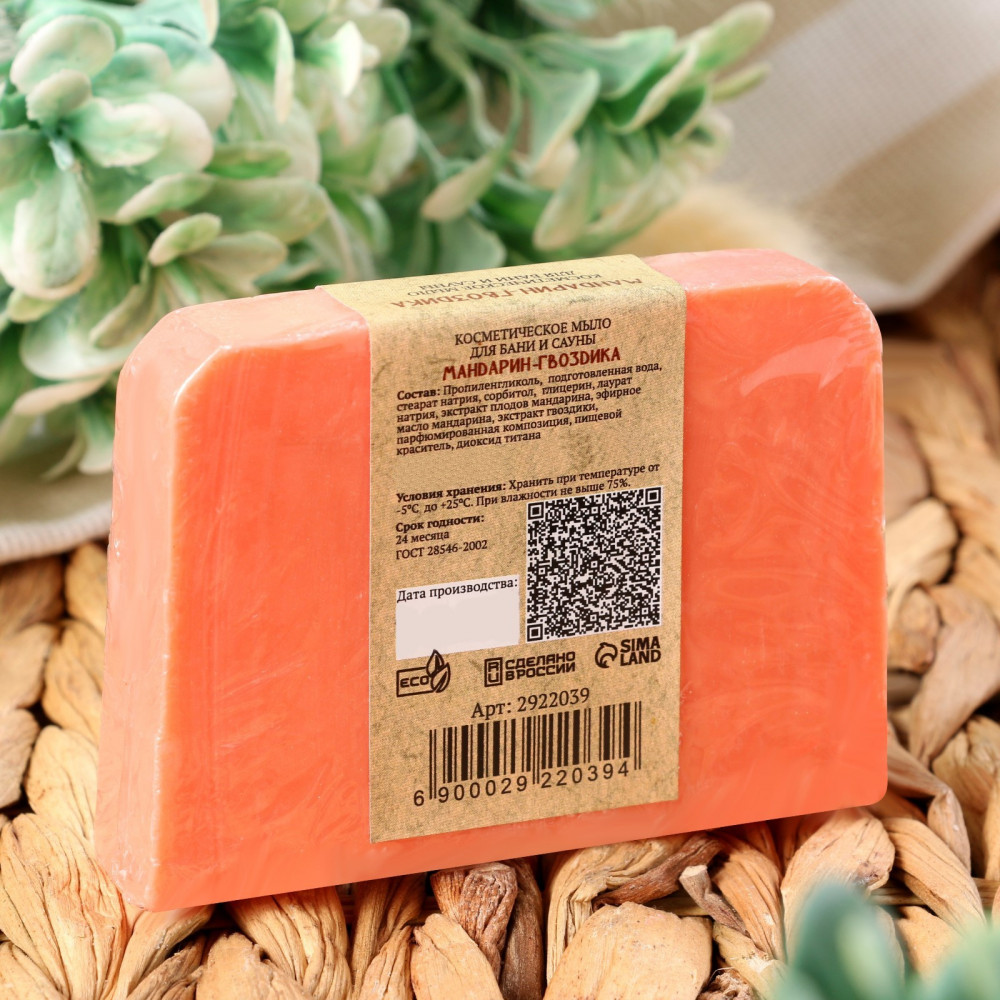 Добропаровъ Мыло для бани и сауны ручной работы «Мандарин и Гвоздика»