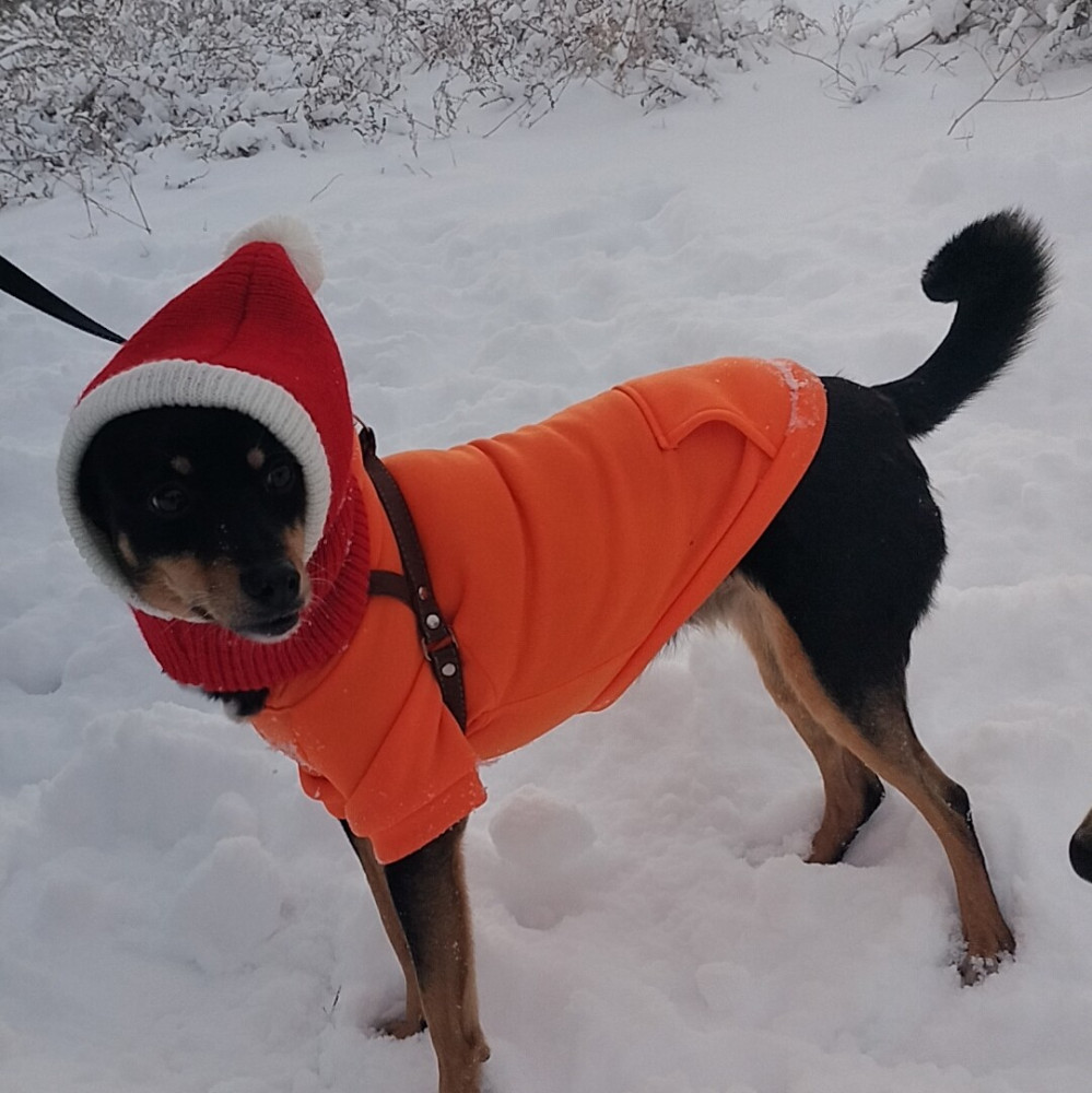 Отличная толстовка , только с размером не угадала , нужно было XL взять .Не учла что собака упитанная .А так супер .