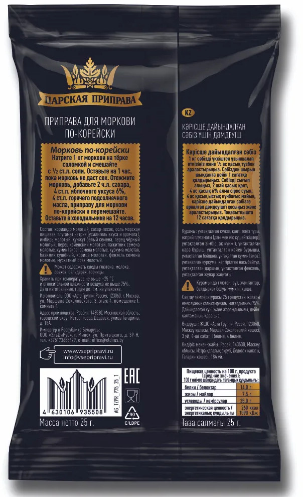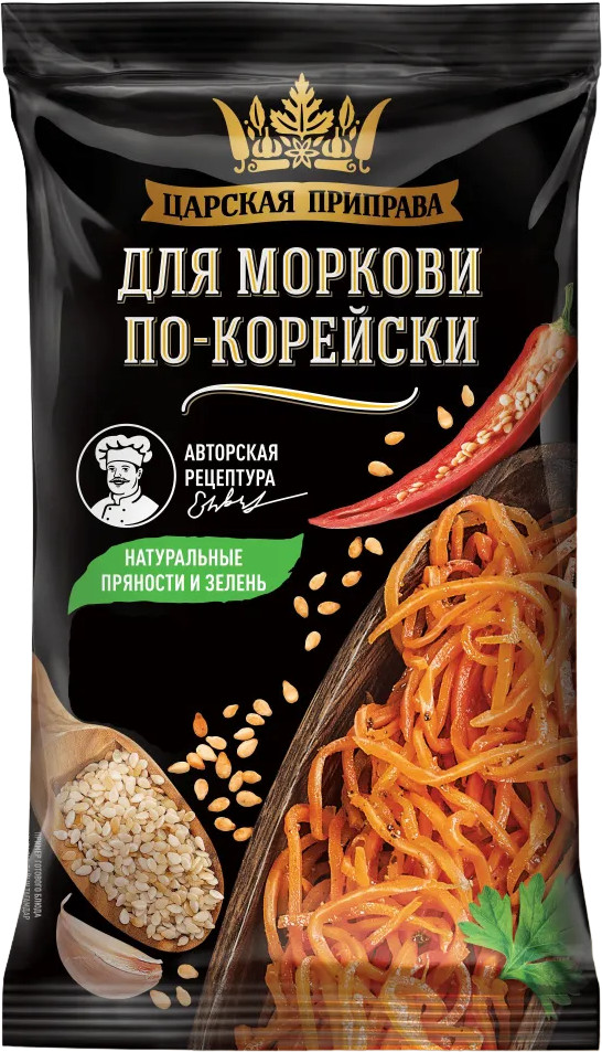 Царская приправа Приправа для моркови по-корейскиВ данный момент этот товар отсутствует в продаже. Возможно, у нас найдется аналогичный или похожий товар здесь. Острая и пряная морковь по-корейски — это идеальная закуска как для повседневного ужина, так и для праздничного стола. Кориандр, имбирь, чили и другие специи придают моркови традиционный пикантный вкус. Приправа для морковки по-корейски содержит все необходимые специи для приготовления острой закуски по классическому рецепту. Вам останется добавить только основной ингредиент. |