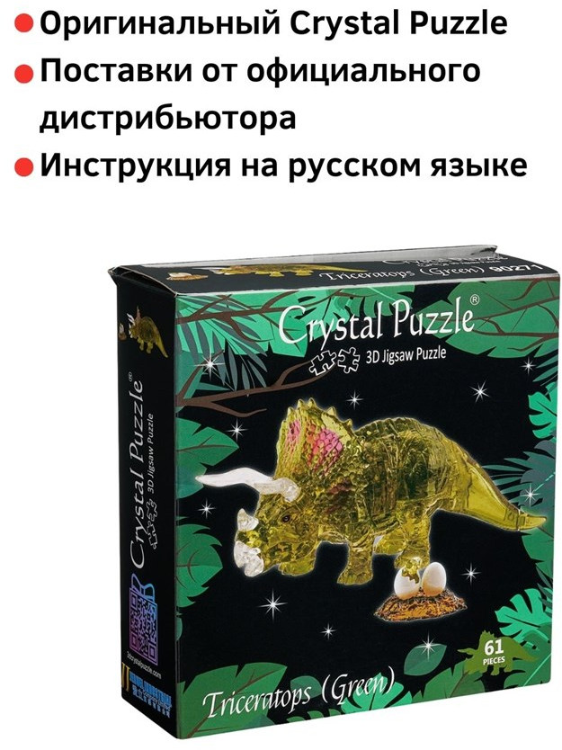 Собранные наборы Crystal Puzzle становятся как необычными украшениями для дома, так и уникальными игрушками. Их можно подарить близким, или же дать им возможность собрать необыкновенный пазл самостоятельно. Сборка 3D пазлов развивает пространственное мышление и помогает расслабиться. Если нет настроения испытывать себя, пазл можно собирать по подробной инструкции на русском языке, которая есть в каждой коробке.