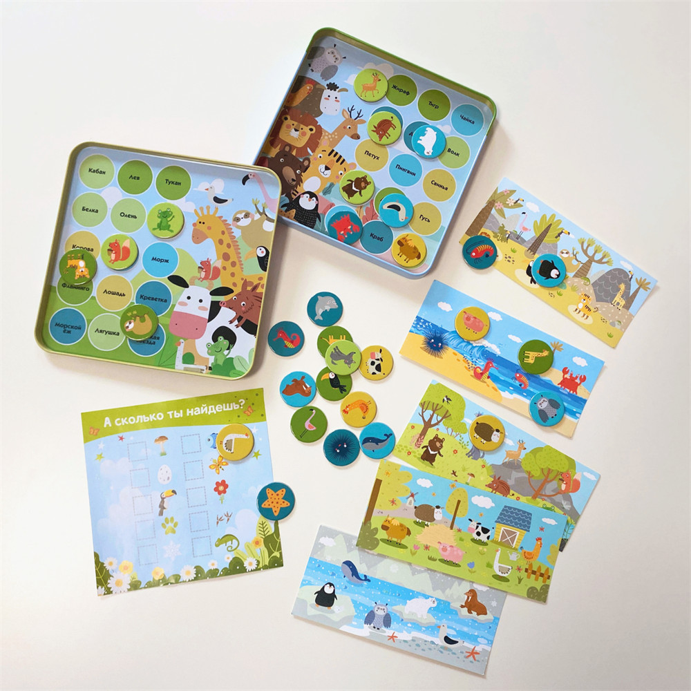 💳 Оплатить за товар можно при получении 🇰🇿 Есть бесплатная доставка по Казахстану от 1 дня 🎁 Копите бонусы с каждой покупки Игра Лото «Животные» рассчитана на 1-2 игрока. Ведущий раздает карточки участникам игры и забирает себе все фишки с животными. Далее ведущий вытягивает по одной фишке и громко называет животное, которое там изображено. Игрок, который находит это животное на своей карточке, забирает фишку себе и закрывает ей рисунок животного на карточке. Выигрывает тот, кто первым закроет всех животных на своей карточке Фишки с магнитной основой надежно крепятся к металлической коробке, так что играть теперь можно где угодно. |
