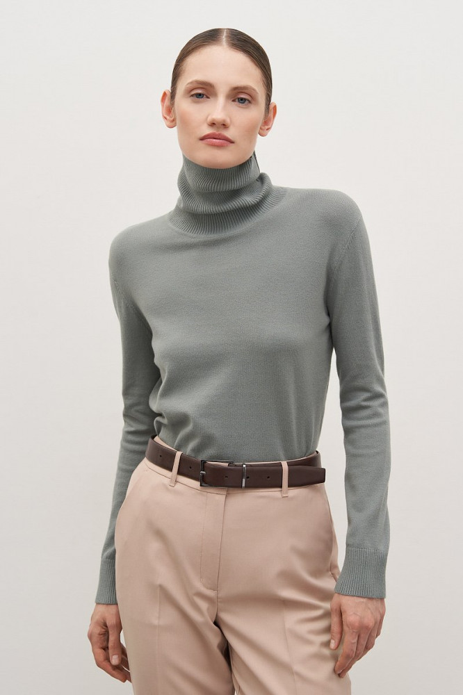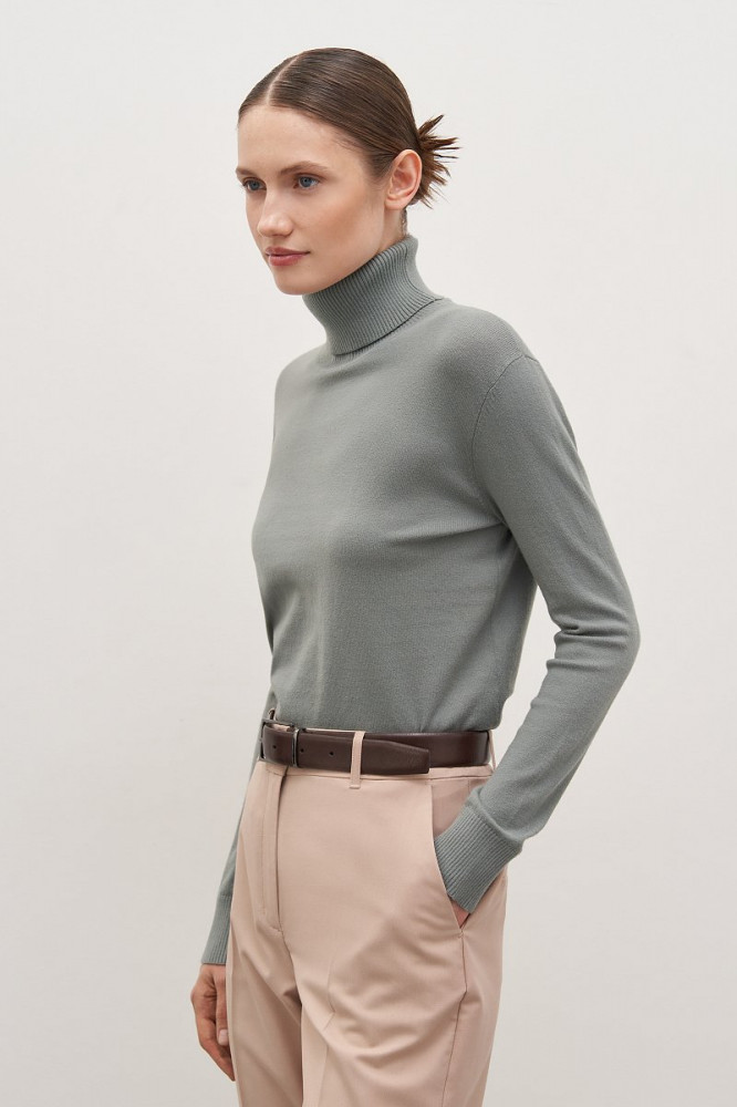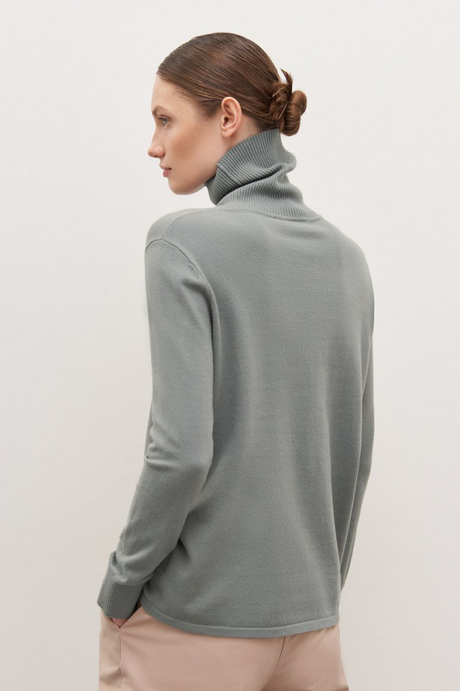 Трикотажный джемпер прямого силуэта. Базовая водолазка с высокой горловиной из мягкой и комфортной ткани. Модель будет приятной к телу и не потеряет первозданный вид после стирки. Универсальный вариант для прохладного сезона, способный дополнить любой образ.