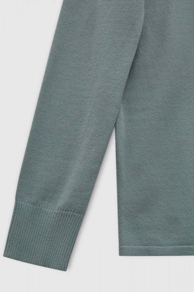 Очень хорошее качество. Мягкая, приятная к телу. Ворот не тугой. Низ прямой, подшитый, резинки нет. Голубой цвет освежает. Заказывала ещё тёмно-серую водолазку. У неё уже вязаная резинка внизу и материал чуть плотнее.