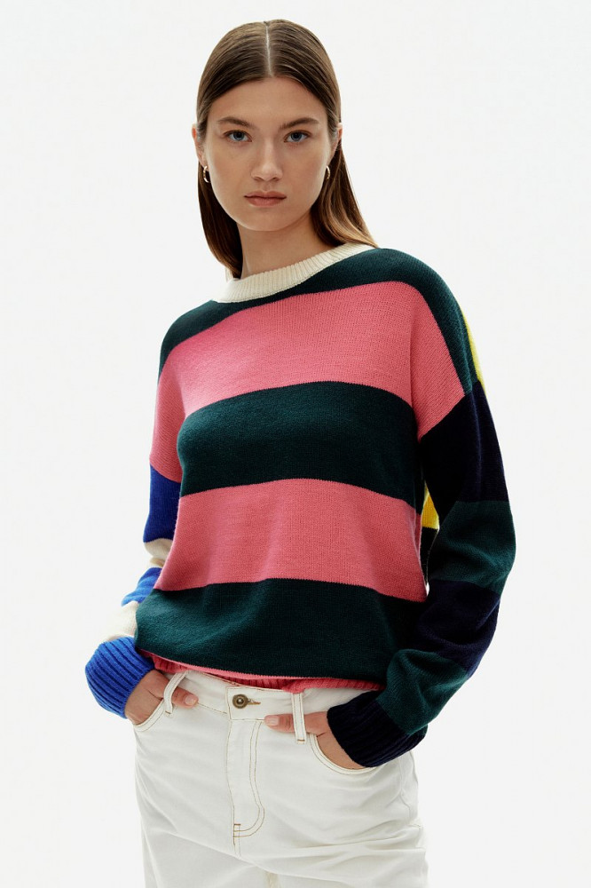 джемпер толстый, тёплый и немного колется. Шерсть есть, а для меня это главное. Мне показалось он большемерит. Покупкой довольна 😌