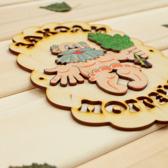 Созданию отличного настроения способствуют как горячая парилка, так и различные элементы декора. Таблички в бане информируют гостей о правилах посещения парной, помогают с навигацией и просто украшают интерьер. Такой аксессуар из дерева не выделяет вредных веществ, он безопасен и долговечен.