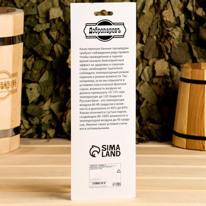 Добропаровъ Термометр «Бутылка»В данный момент этот товар отсутствует в продаже. Возможно, у нас найдется аналогичный или похожий товар здесь. Чтобы парение в бане благотворно влияло на кожу и весь организм в целом, контролируйте температуру и уровень влажности. Опытные банщики чувствуют, когда температура в комнате перестаёт быть комфортной, и вовремя останавливают подачу пара, но новичку отслеживать этот показатель сложно. Полагаясь на измерительный прибор, вы всегда будете знать, когда следует подложить дров в каменку и поддать пару. Оптимальная температура для парилки в русской бане составляет 60–70 °C при влажности 70–90%. |