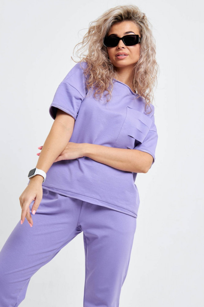 Цвет приятный,костюм удобный,свободный крой,заниматься спортом будет комфортно.Жду лета.
