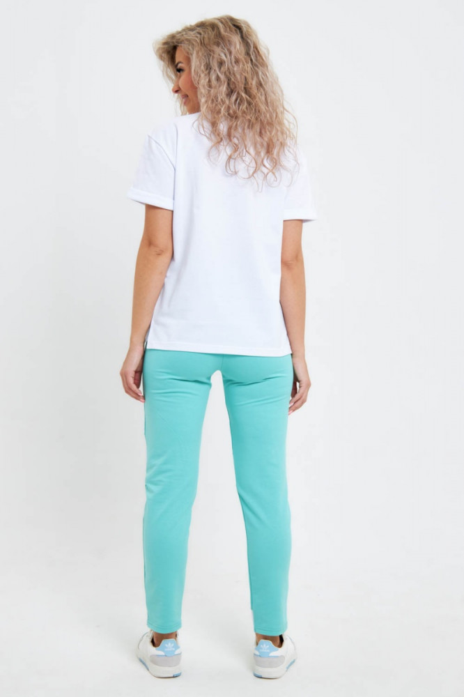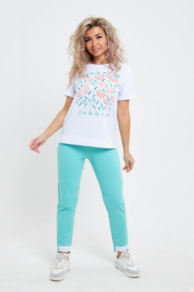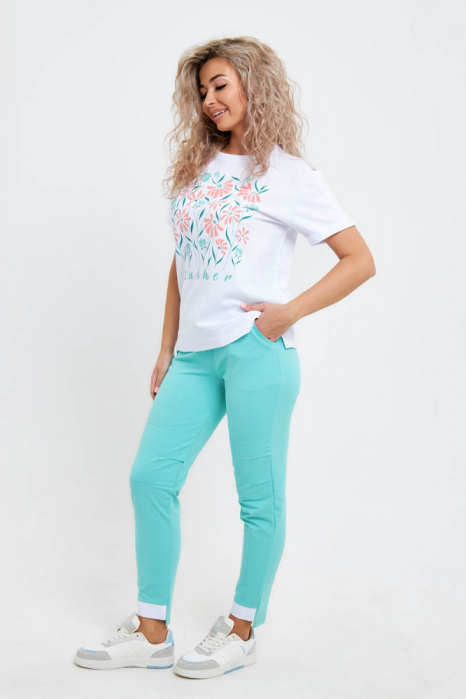 Хороший х/б костюм. Футболку постирала, села примерно один размер, и стала как раз по мне. Брюки не стирала, запас тоже есть. По картинке не сразу поняла, что это на коленях, оказывается разрезы, сделаны аккуратно, снизу подшита белая ткань, думаю не будут обтрепываться.