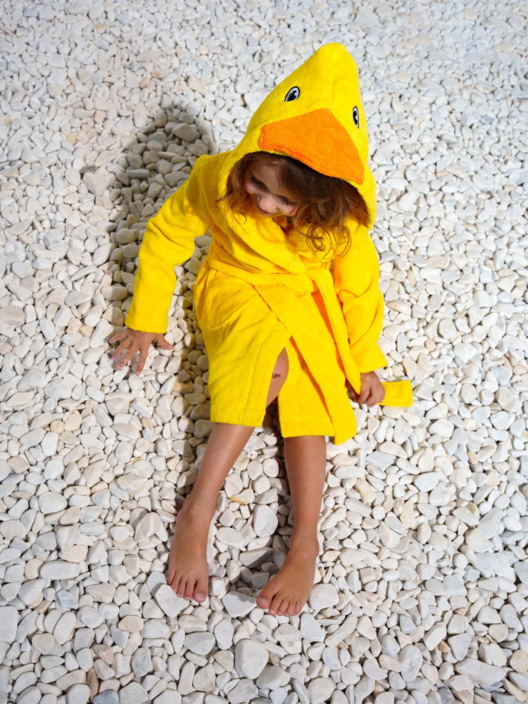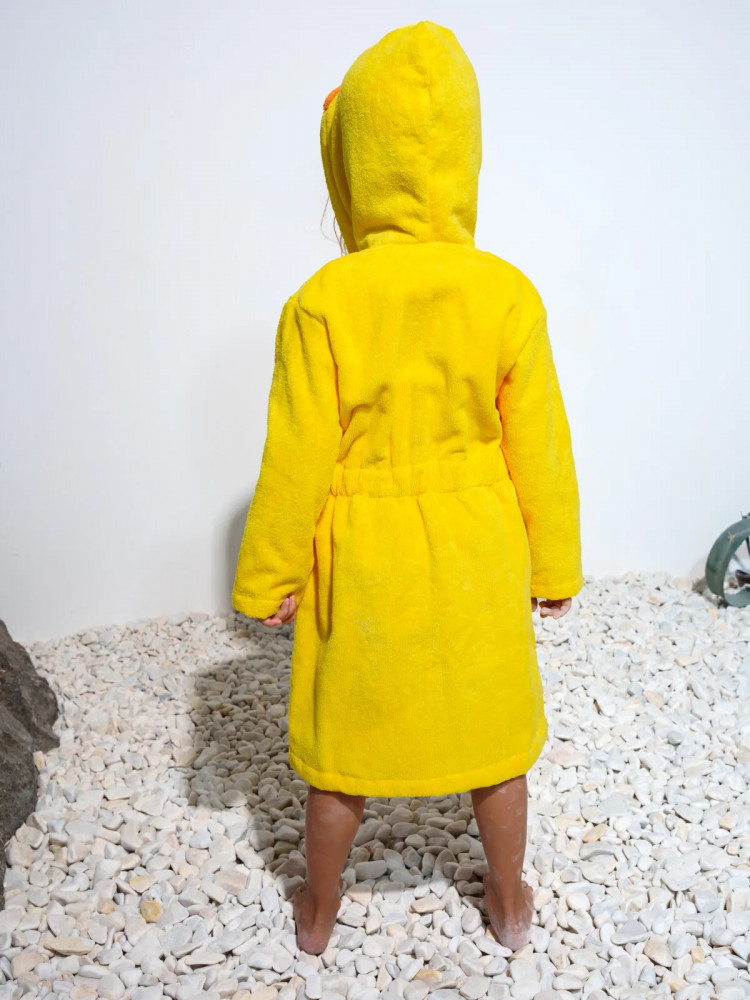 Пошит качественно, размеру соответствует, аппликация на капюшоне украшает халат, по спине на поясе вставлена резинка