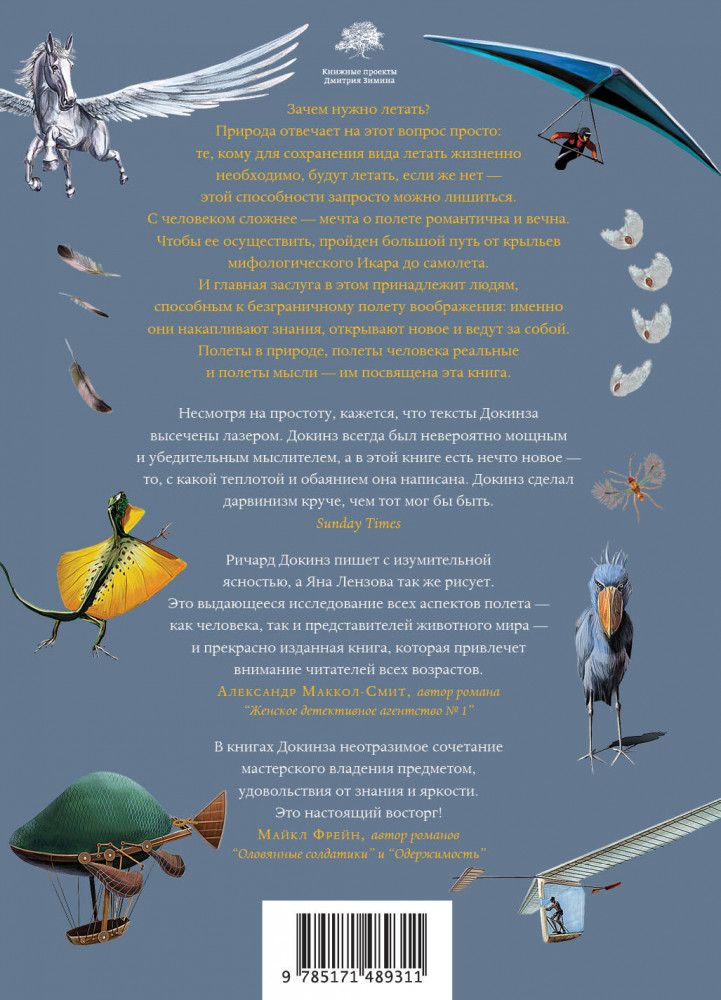 Полеты воображенияВ данный момент этот товар отсутствует в продаже. Возможно, у нас найдется аналогичный или похожий товар здесь. Серия: Весь Ричард Докинз Полет, воздушная стихия — мечта и цель, которая гипнотизировала человека на протяжении тысячелетий. Земная гравитация — суровая реальность, которая противостоит этой мечте и которую неизбежно учитывает и природа. Эволюция подходила к полету рационально: если для целей сохранения вида нужно летать, средства для этого непременно появятся, даже если для этого потребуются миллионы лет. |