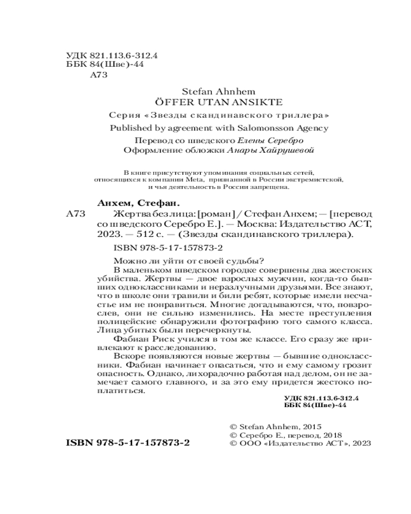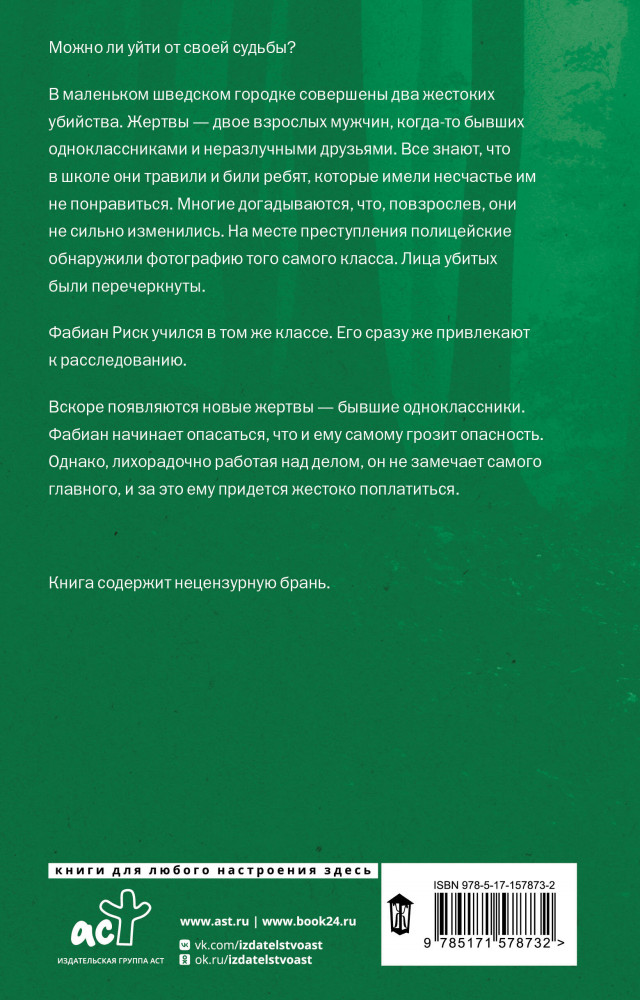 💳 Оплатить за товар можно при получении 🇰🇿 Есть бесплатная доставка по Казахстану от 1 дня 🎁 Копите бонусы с каждой покупки Серия: Звезды скандинавского триллера Можно ли уйти от своей судьбы? |