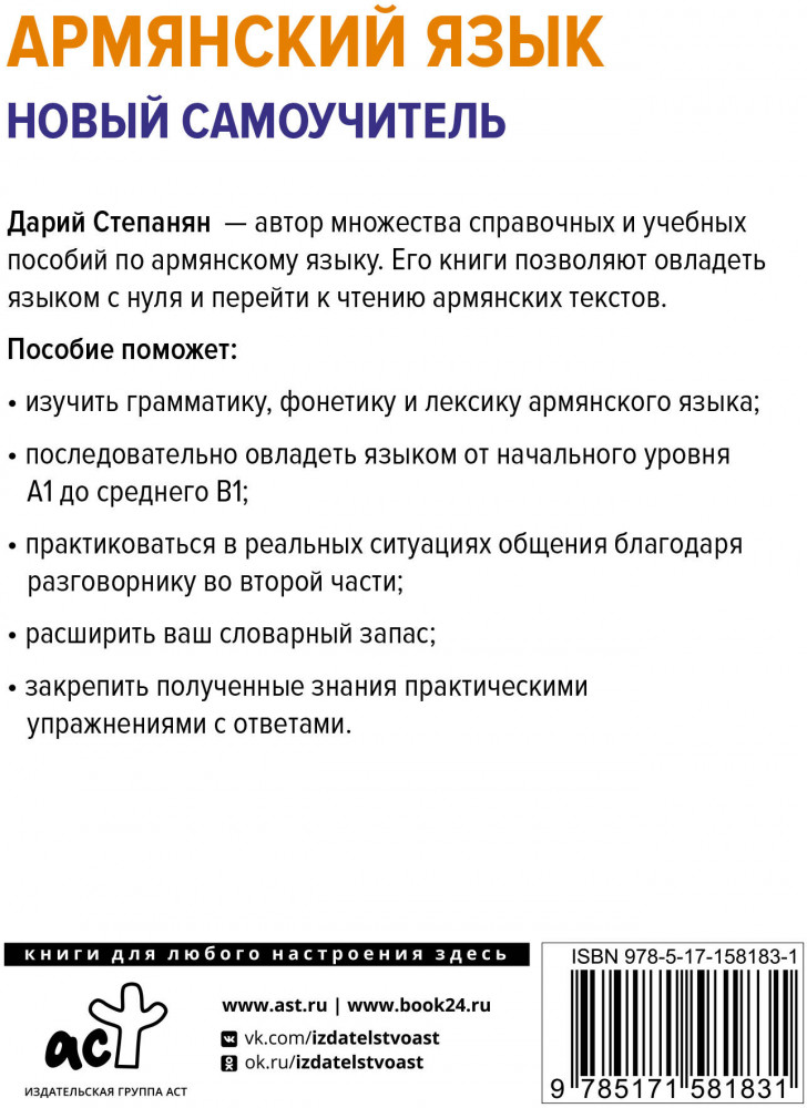💳 Оплатить за товар можно при получении 🇰🇿 Есть бесплатная доставка по Казахстану от 1 дня 🎁 Копите бонусы с каждой покупки Серия: Иностранный язык с легкостью Дарий Степанян — автор множества справочных и учебных пособий по армянскому языку. Его книги позволяют овладеть языком с нуля и перейти к чтению армянских текстов. |
