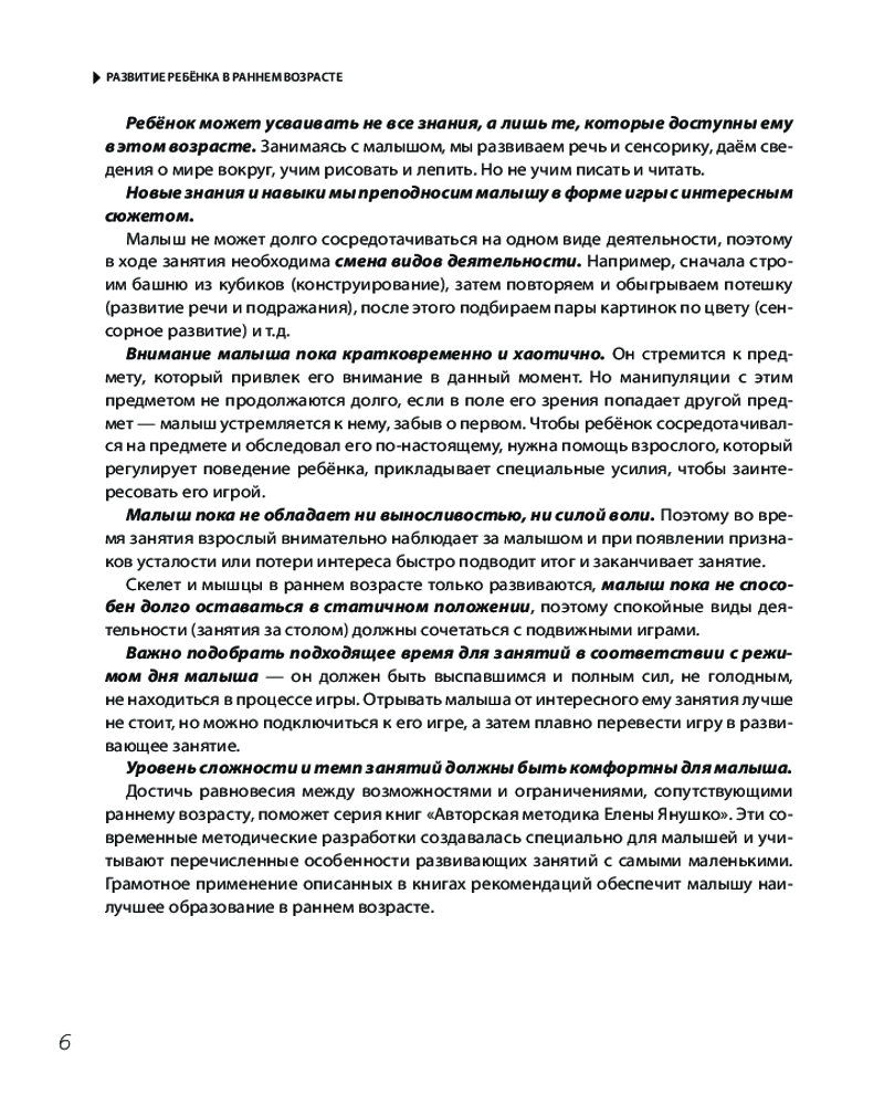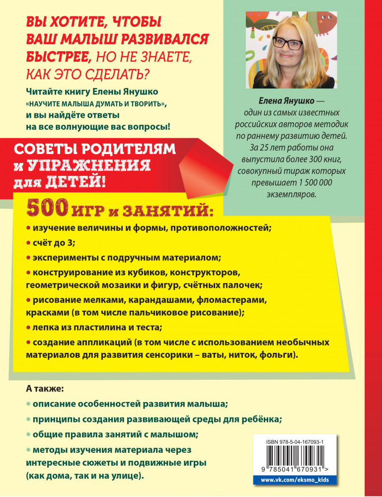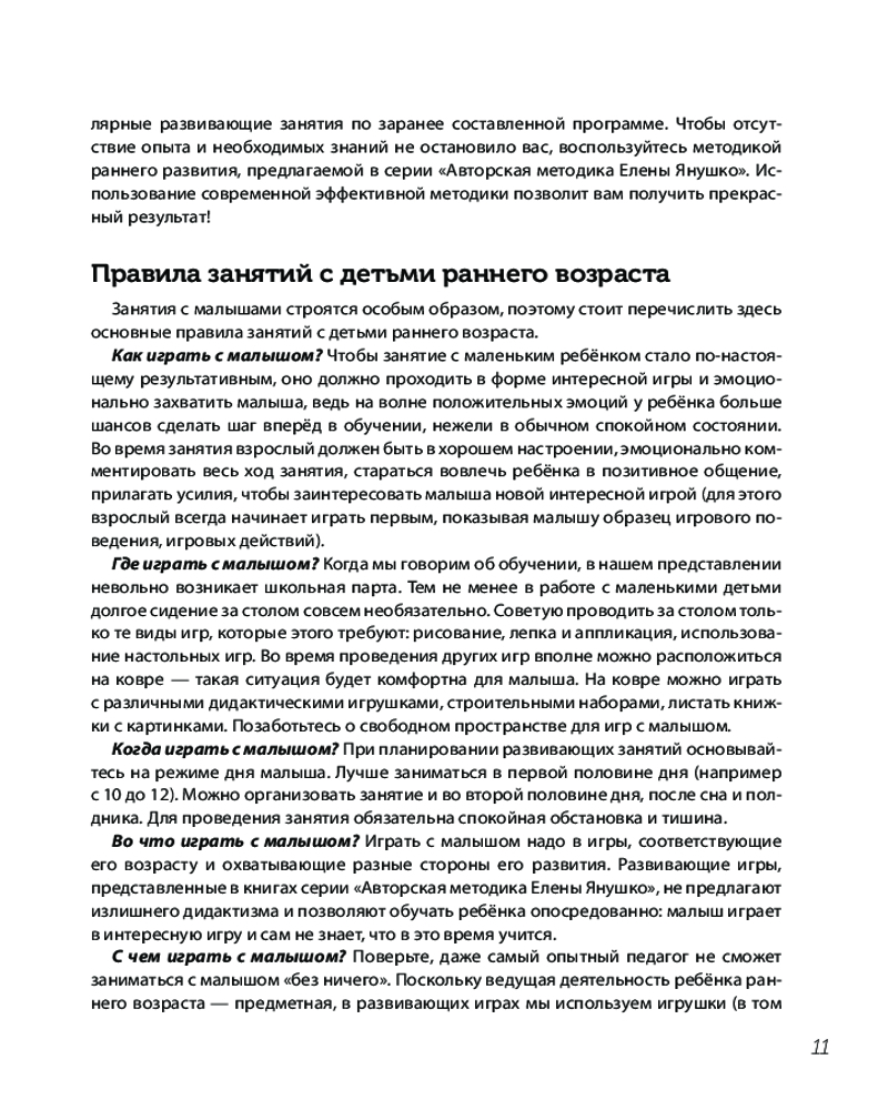 💳 Оплатить за товар можно при получении 🇰🇿 Есть бесплатная доставка по Казахстану от 1 дня 🎁 Копите бонусы с каждой покупки Серия: Авторская методика Елены Янушко Книга Елены Янушко, признанного специалиста по раннему развитию, посвящена актуальной теме — развитию речевого мышления и творческого потенциала ребёнка раннего возраста (от 1 до 3 лет). Автор знакомит читателя с особенностями развития малышей и описывает начальный этап работы по развитию их мышления, предлагая различные игры и упражнения, в том числе с использованием дополнительных материалов (от кубиков до конструкторов). |