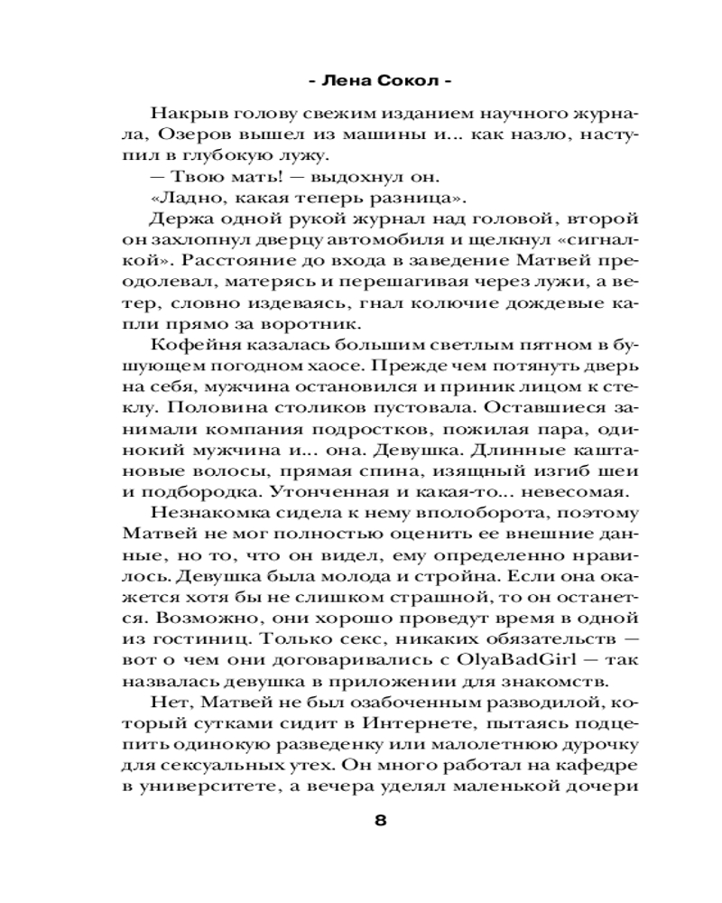 💳 Оплатить за товар можно при получении 🇰🇿 Есть бесплатная доставка по Казахстану от 1 дня 🎁 Копите бонусы с каждой покупки Серия: Романтика Лены Сокол Между ними был всего метр. Расстояние дыхания. Один шаг — так далеко и невыносимо близко. Так много «хочу» и еще больше — «нельзя». |