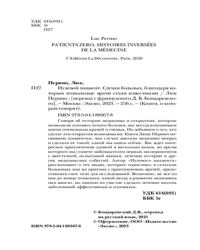 Нулевой пациент. Случаи больных, благодаря которым гениальные врачи стали известными-20% +19 интересная легко читается хорошая редактура неточности незавершённость