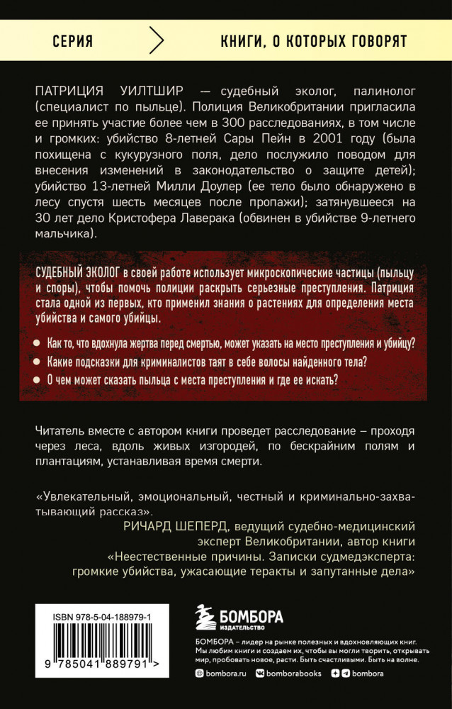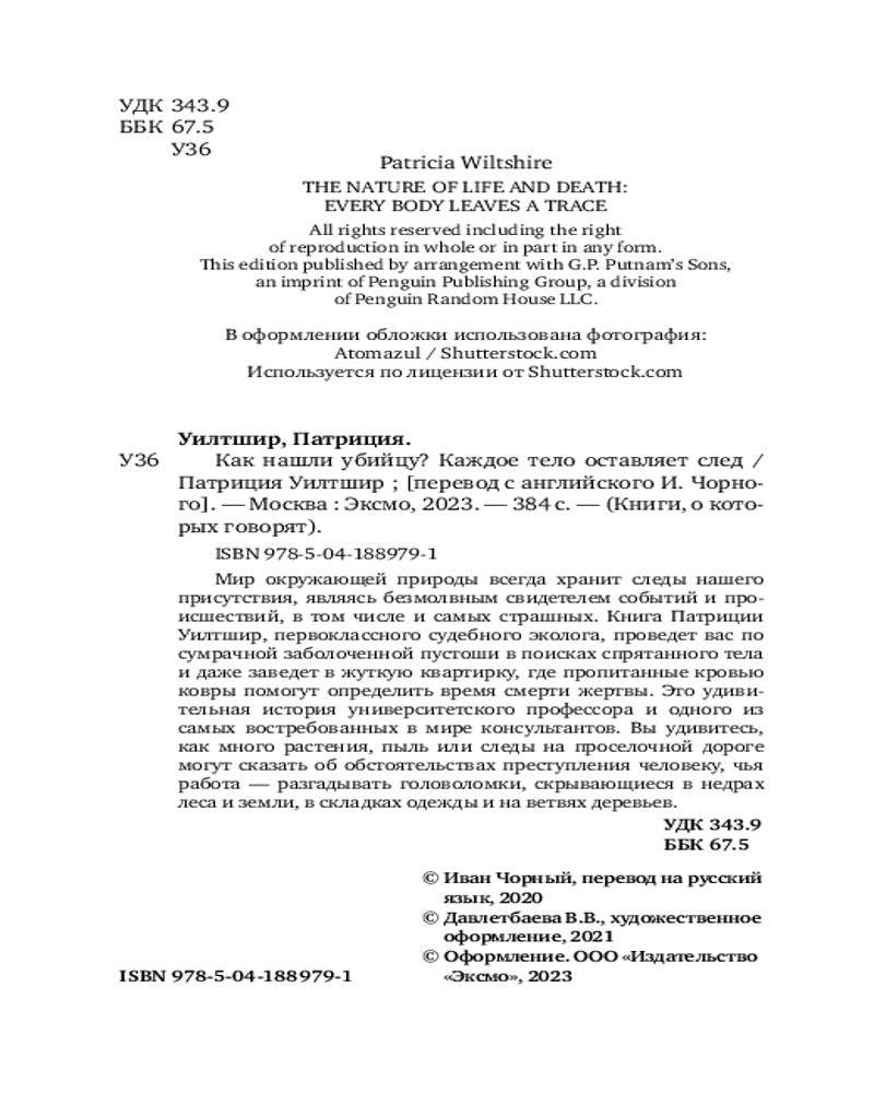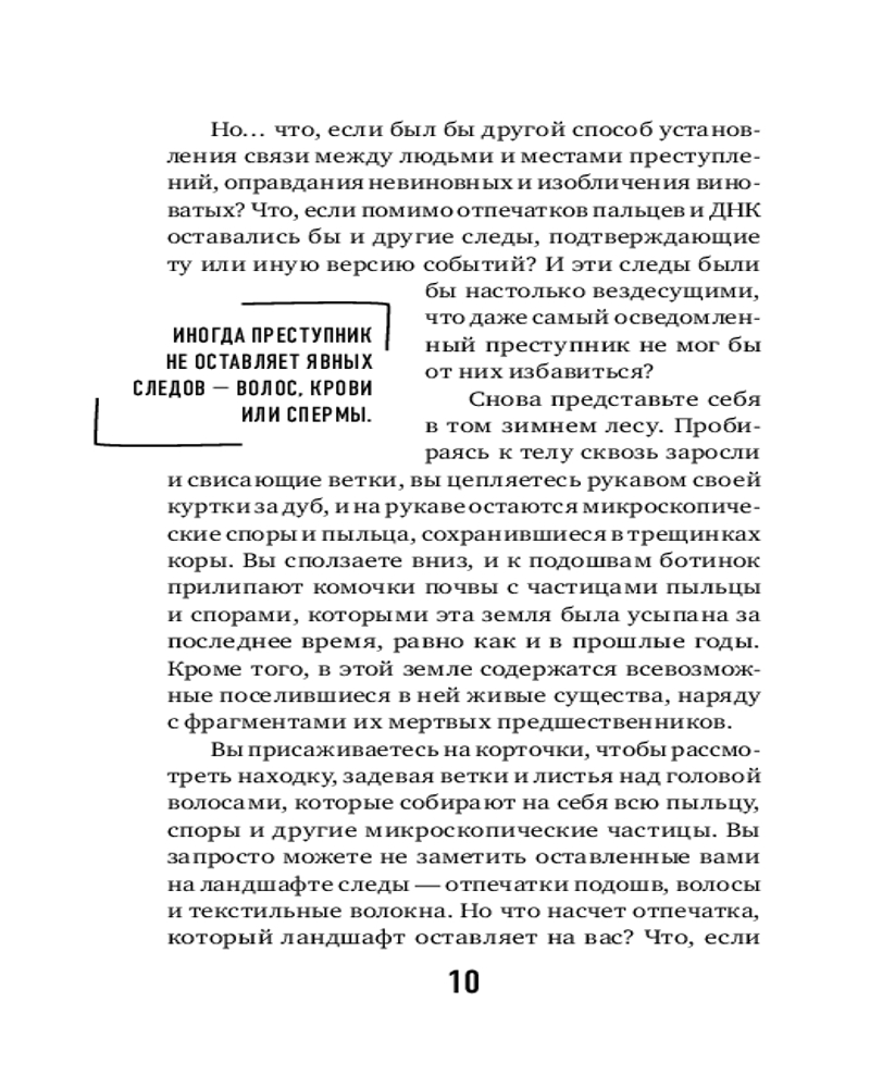 Как нашли убийцу? Каждое тело оставляет следВ данный момент этот товар отсутствует в продаже. Возможно, у нас найдется аналогичный или похожий товар здесь. Серия: Книги, о которых говорят Природа запоминает все события, происходящие в ее владениях. Сами того не замечая, люди постоянно взаимодействуют с ней: пыль, семена растений, грибок, почва и разнообразные микроскопические формы жизни — часть нашего ежедневного окружения, тихая и не всегда приметная. |
