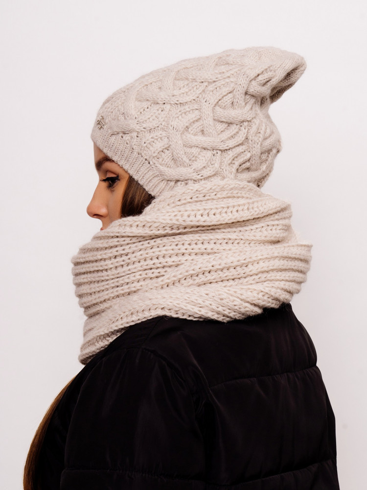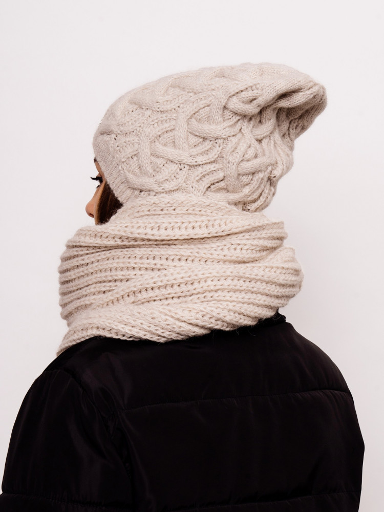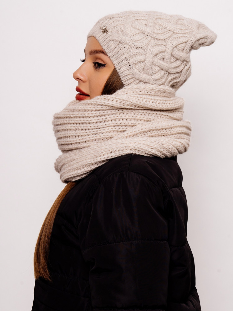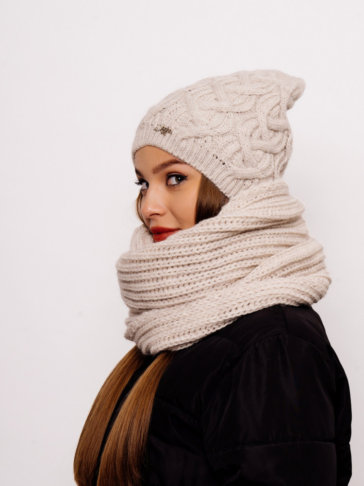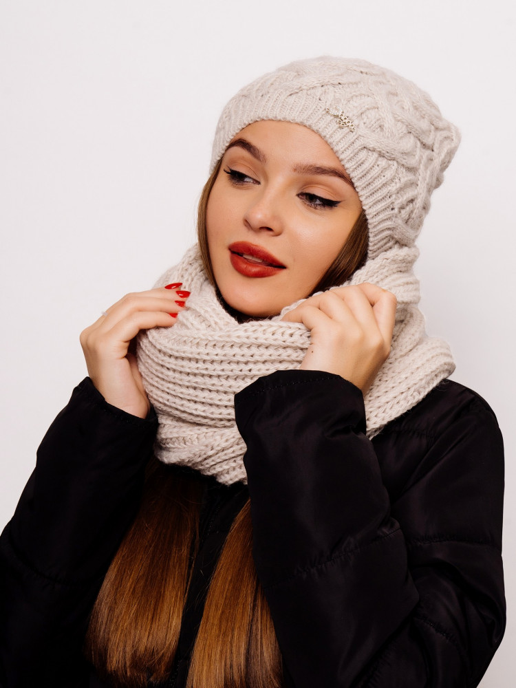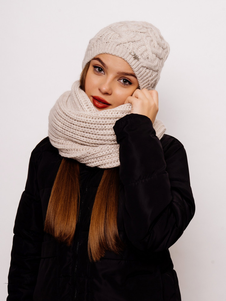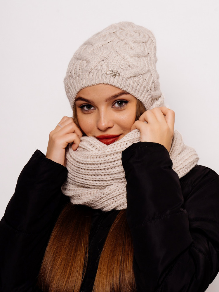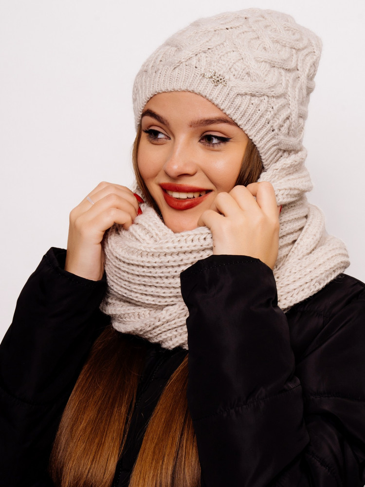 Стильный, вязаный, комфортный комплект «Орхидея» состоит из мягкой, уютной шапки с флисовой подкладкой и снуда. Комплект является незаменимым аксессуаром в зимний период. Шапка мягко тянется и аккуратно облегает голову. Согреет даже в минусовую погоду. Комплект смотрится очень стильно за счёт оригинальной вязки аранами и сочетается со всеми стилями верхней одежды. Отличный выбор как для себя, так и для подарка.