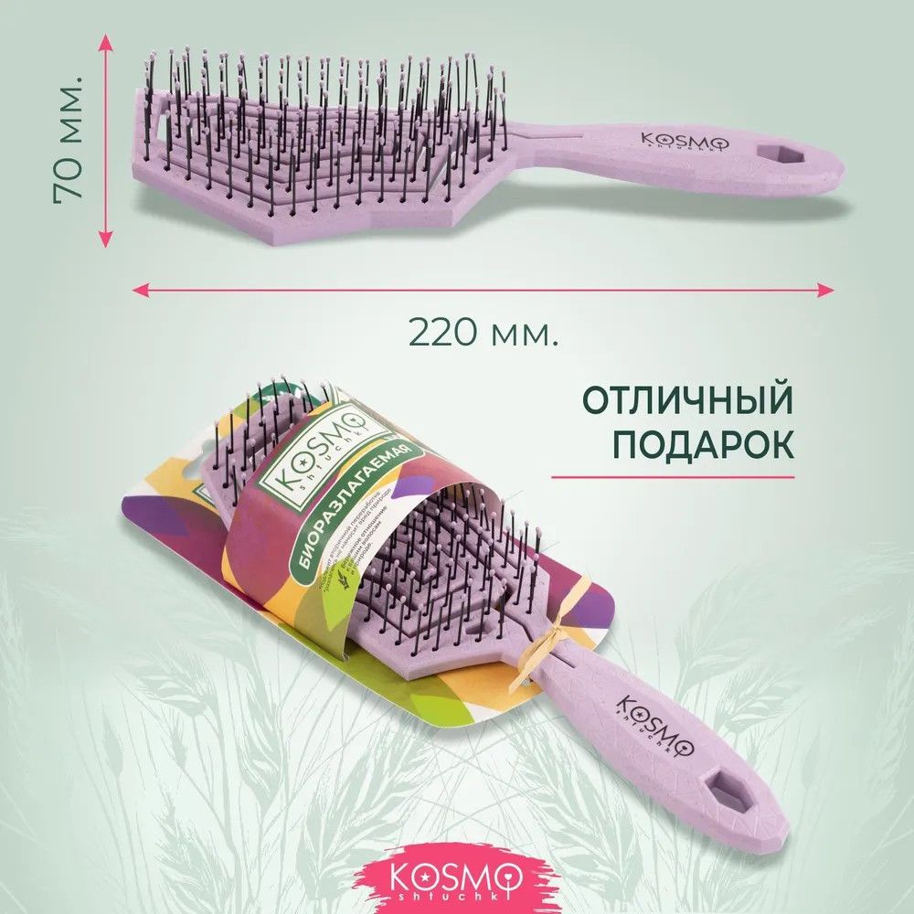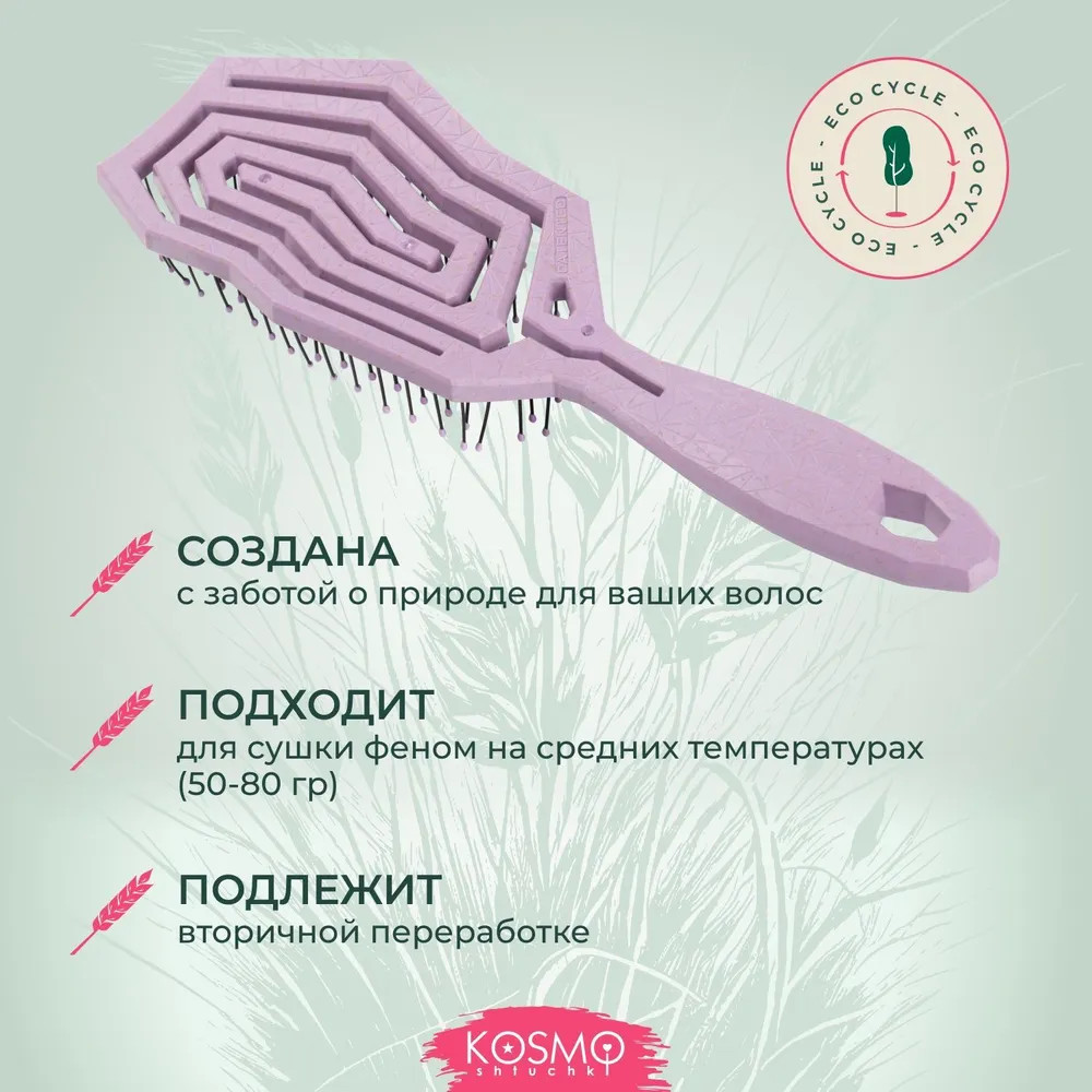 Расчёска изготовлена на основе натуральных растительных волокон, таких как солома, рисовая шелуха и полимерная смола. Подобная комбинация эффективно снижает выбросы углерода в окружающую среду при вторичной переработки или утилизации. Расчёска облегчает расчёсывание запутанных волос благодаря уникальной щетине.