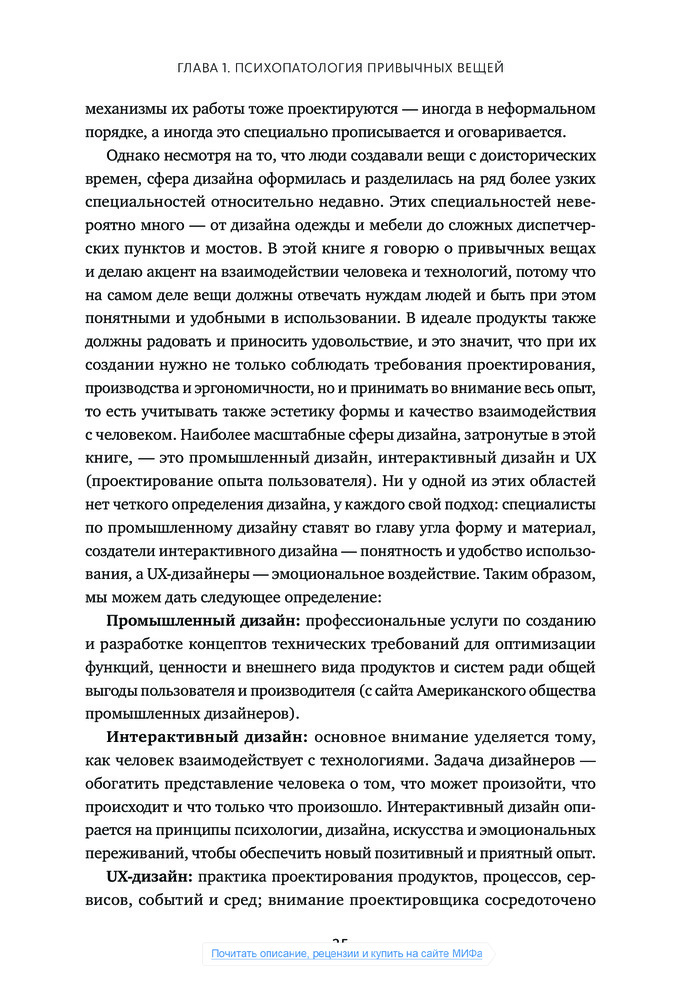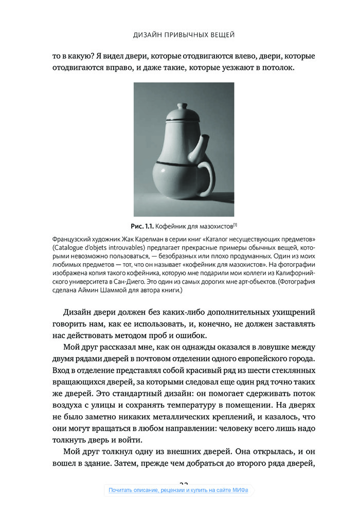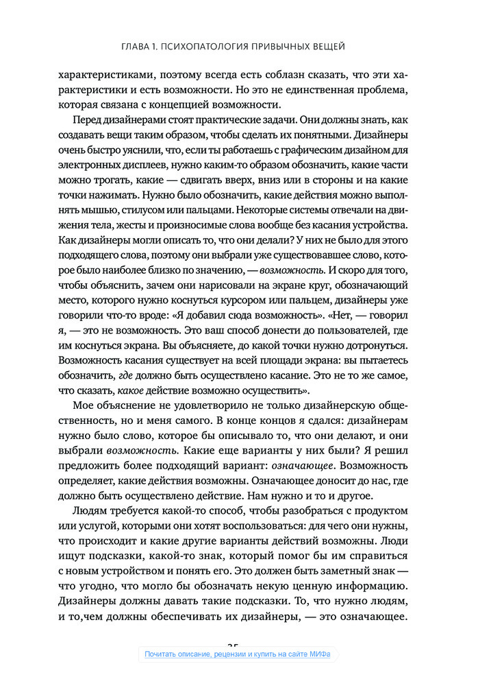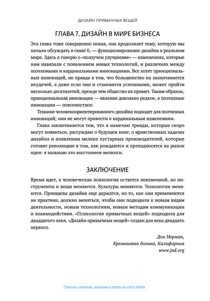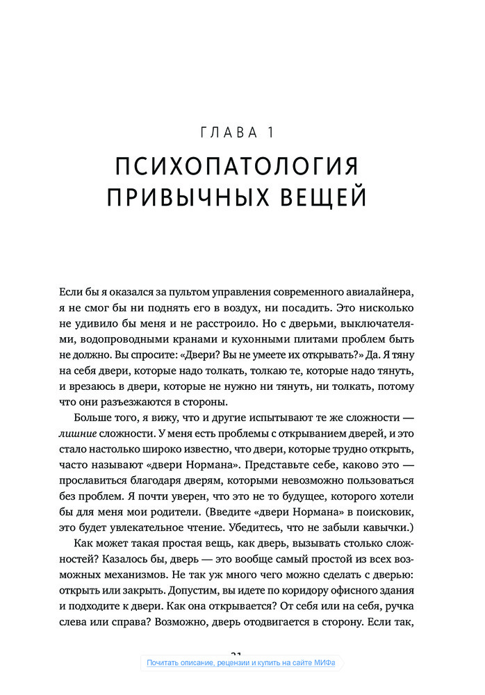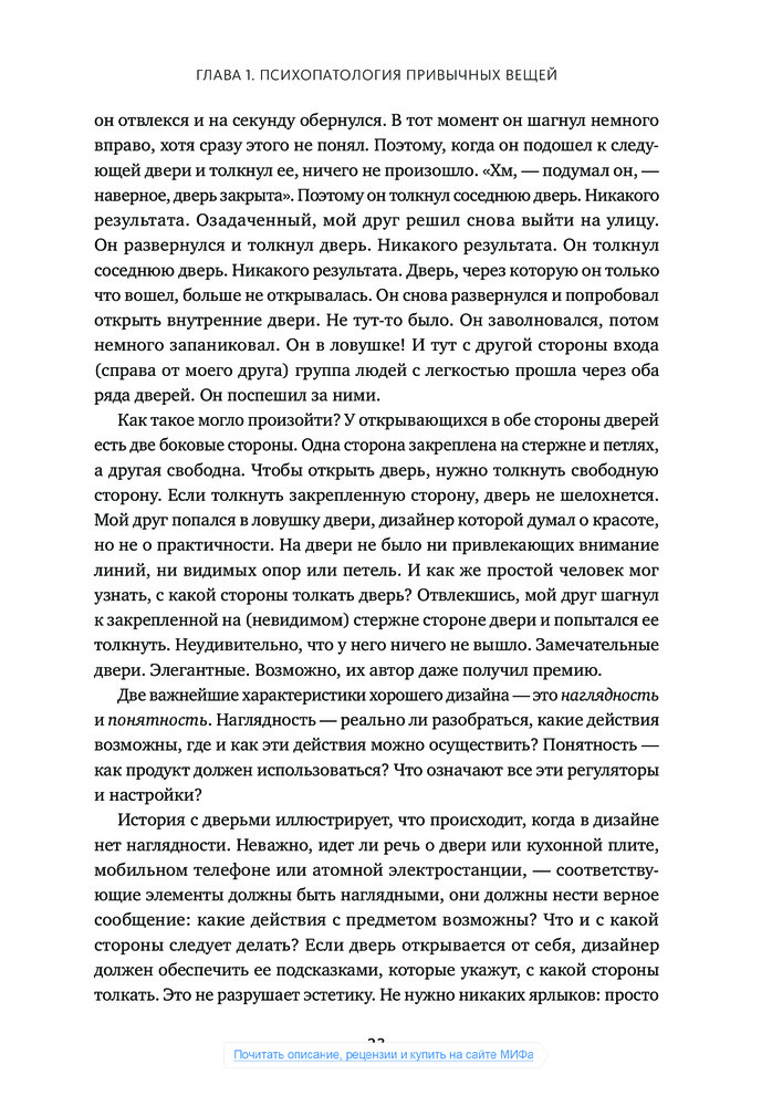 💳 Оплатить за товар можно при получении 🇰🇿 Есть бесплатная доставка по Казахстану 🎁 Копите бонусы с каждой покупки Даже умный человек чувствует себя подчас дураком, пытаясь сообразить, на какую кнопку нажать, чтобы включить свет, как разжечь духовку и что делать с дверью — тянуть, толкать или раздвигать. Причиной тому дизайн, забывающий о нуждах пользователей и основах когнитивной психологии, считает автор книги Дональд Норман, человек, которого газета Business Week назвала «одним из влиятельнейших дизайнеров в мире». |