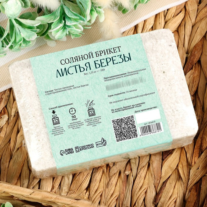 Применение: нагревайте брикет на печи не менее 90 минут, затем поддайте на него горячей воды. Соль наполнит воздух бани ионами, тем самым поможет снять усталость, улучшить кровообращение и общее самочувствие.