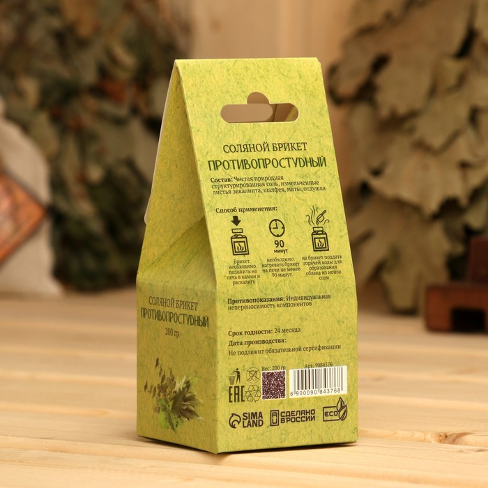 Применение: нагревайте брикет на печи не менее 90 минут, затем поддайте на него горячей воды. Соль наполнит воздух бани ионами, тем самым поможет снять усталость, улучшить кровообращение и общее самочувствие.