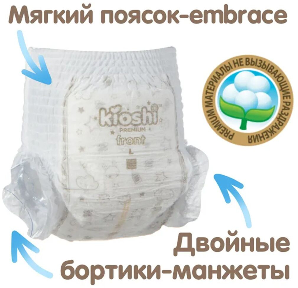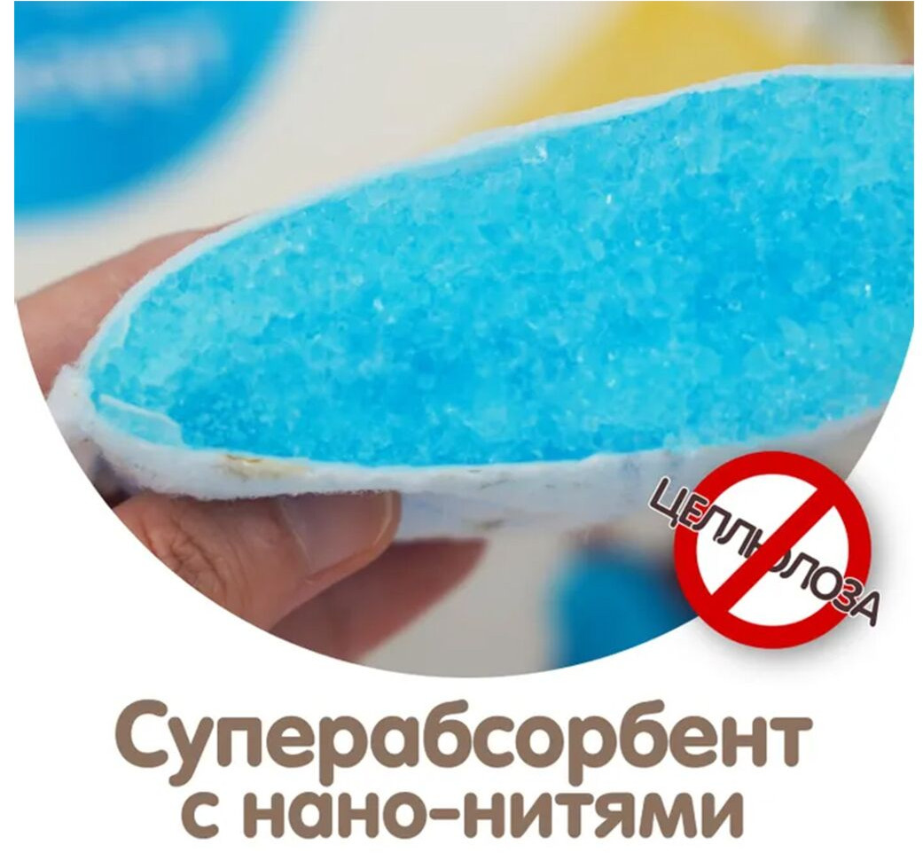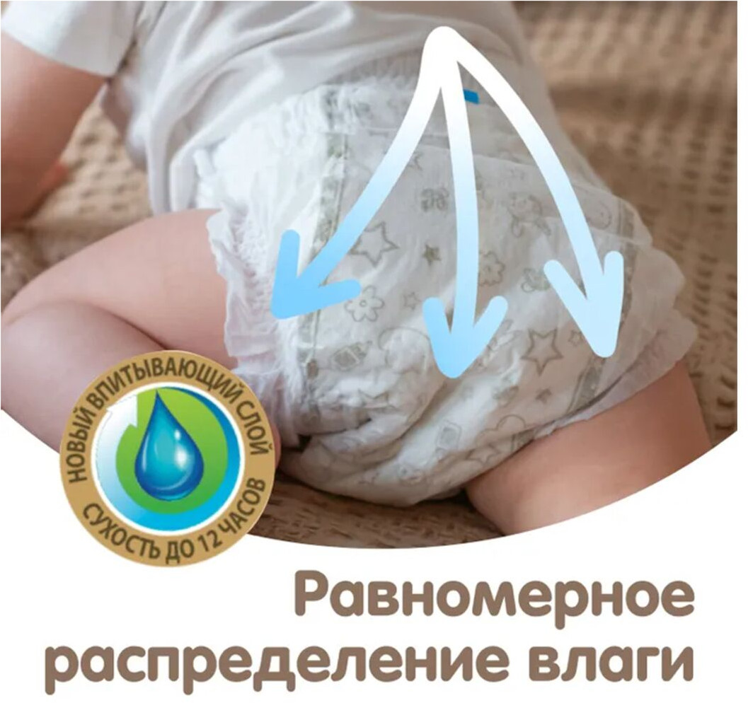 Подгузник хорошо держит влагу, не протекает Мягкий, приятный на ощупь Широкая резинка, не тугая Есть индикатор наполнения и утилизационная лента