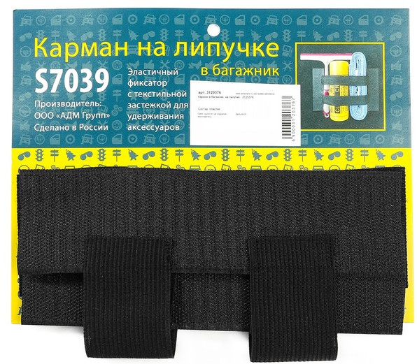 Карман в багажникВ данный момент этот товар отсутствует в продаже. Возможно, у нас найдется аналогичный или похожий товар здесь. Карман на липучке в багажник — это эластичный фиксатор с текстильной застёжкой для удерживания аксессуаров. Багажный карман универсален, удобен и прост в эксплуатации. Поможет навести порядок в багажнике автомобиля и оптимизировать его пространство. Теперь все необходимые вещи — незамерзающая жидкость, огнетушитель или автохимия, будут на своих местах. Крепится с помощью липучки на ворсовое покрытие в любом удобном месте багажника. |