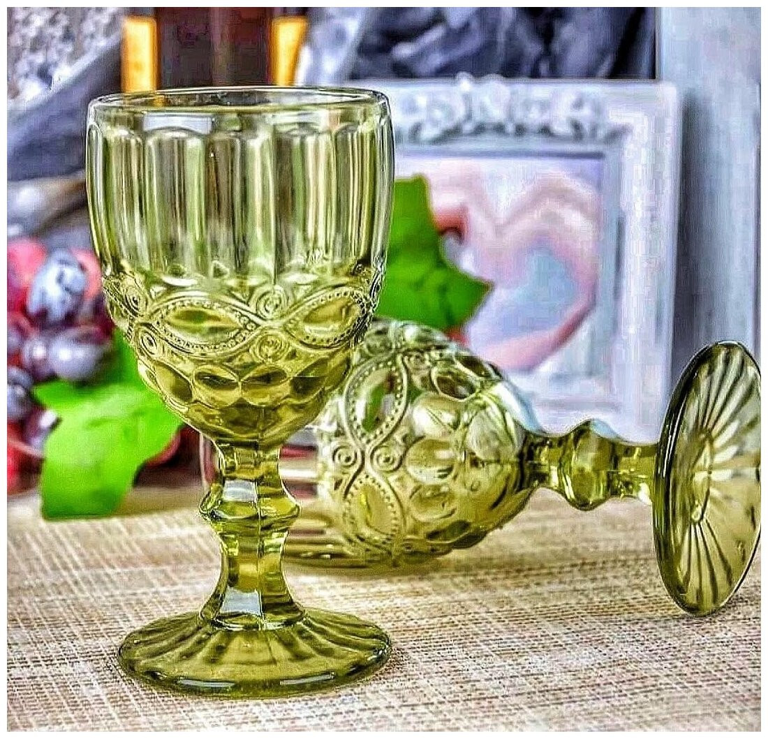Бокалы по объему небольшие (нужно было внимательно смотреть объём в описании), цвет немного подвёл, думала, что будут более насыщенного цвета, а он тускло-зелёный.