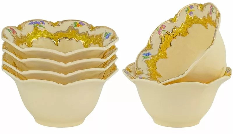 Новая коллекция «Оливия» выполнена из тонкого фарфора, эмаль цвета топленного молока, с цветочным декором и золотой отводкой. Коллекция состоит из предметов сервировки. Упаковано в подарочную коробку.