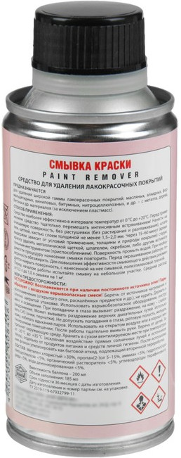 Предназначается для удаления широкой гаммы лакокрасочных покрытий: масляных, алкидных, формальдегидных, виниловых, нитроцеллюлозных и др.; для очистки от монтажной пены (жидкой и отвердевшей) строительного и др. инструмента; для размягчения и удаления застарелой монтажной пены с любых конструкций (изделий). Применяется на изделиях из металла, дерева, бетона, керамики и др. материалов (пластмассы — в зависимости от структурообразующего полимера). Перед применением рекомендуется проверить стойкость материала.