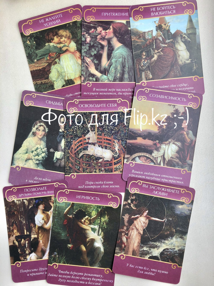 Карты оракулы, красивые, с посланиями для влюбленных, романтичные, рисунки приятные, рубашка красивая. Покрытие карт обычное, чувствуется не большая шершавость от краски. Плотность карт средняя. Цена и качество совпадают.
