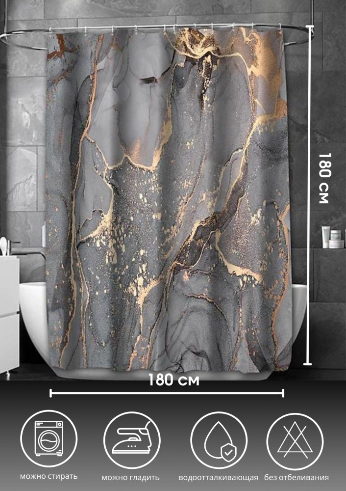 GFL Штора для ванной «Мрамор»В данный момент этот товар отсутствует в продаже. Возможно, у нас найдется аналогичный или похожий товар здесь. Тканевая штора для ванной комнаты выполнена из плотного полиэстера с водоотталкивающей пропиткой, устойчивого к загрязнению, влагостойкого, отличающегося долговечностью. Занавеска для душа — защита от брызг. Верхний край с металлическими люверсами. 12 пластиковых колец, которыми комплектуется занавеска для ванной комнаты, подходят ко всем современным карнизам. |