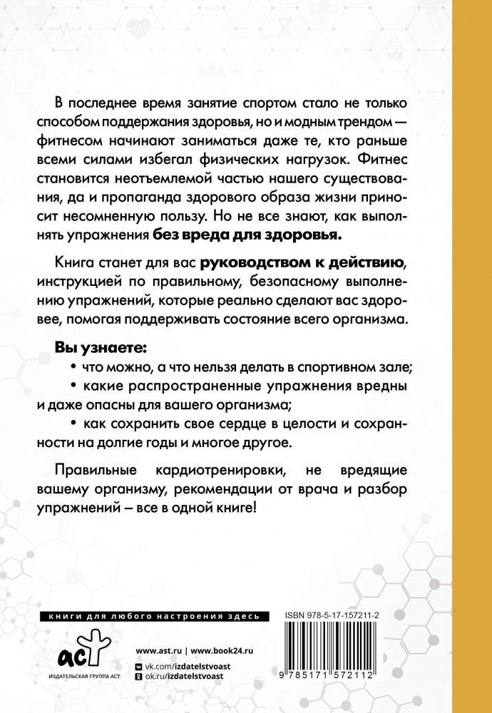 💳 Оплатить за товар можно при получении 🇰🇿 Есть бесплатная доставка по Казахстану от 1 дня 🎁 Копите бонусы с каждой покупки Серия: Упражнения для жизни В последнее время занятие спортом стало не только способом поддержания здоровья, но и модным трендом — фитнесом начинают заниматься даже те, кто раньше всеми силами избегал физических нагрузок. Фитнес становится неотъемлемой частью нашего существования, да и пропаганда здорового образа жизни приносит несомненную пользу. Но не все знают, как выполнять упражнения без вреда для здоровья. |