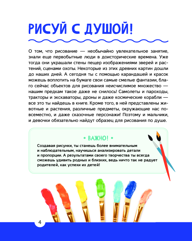 💳 Оплатить за товар можно при получении 🇰🇿 Есть бесплатная доставка по Казахстану от 1 дня 🎁 Копите бонусы с каждой покупки Серия: Детская энциклопедия увлечений Эта книга на практических примерах научит ребенка воплощать в рисунке любые художественные задумки, поэтапно покажет, как, опираясь на простые геометрические фигуры, построить основу изображения, а затем развить его деталями и в результате получить красивый, а главное, правильно |
