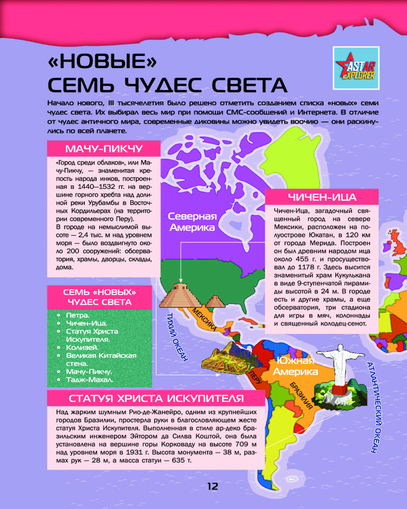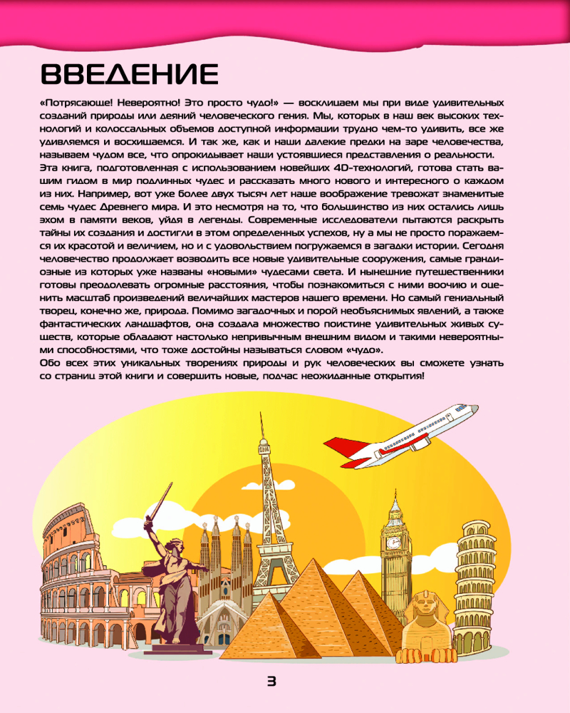 💳 Оплатить за товар можно при получении 🇰🇿 Есть бесплатная доставка по Казахстану от 1 дня 🎁 Копите бонусы с каждой покупки Серия: Большой 4D атлас Этот большой великолепно иллюстрированный 4D-атлас приоткроет перед юными читателями тайны необыкновенных сооружений древних цивилизаций и архитектурных шедевров современности, которыеобъединены общим названием «чудеса света». В древности их было семь, однако с течением времени таких удивительных творений, созданных природой и человеческим гением, насчитывается ужегораздо больше. К признанным чудесам света добавились даже некоторые обитатели растительного иживотного мира, обладающие необычным внешним видом или какими-то невероятными способностями. Обо всех этих замечательных объектах вы сможете узнать, листая уникальную книгу нового поколения, в которой важные сведения и любопытные факты приведены в сопровождении огромного количества зрелищных иллюстраций. А новейшие 4D-технологии совершенно изменят восприятие прочитанного, позволяя обозревать чудеса света в интерактивном режиме. Чтобы знаменитые памятники природы, истории и культуры «ожили» и «заговорили», необходимо будет лишь скачать бесплатное приложение ASTAR EXPLORER на мобильное устройство, настроить его и действовать согласно инструкции. Дополненная реальность, звуковые эффекты и нестандартно изложенная познавательная информация откроют перед читателями удивительные возможности для знакомства с чудесами света в самом современном формате! |