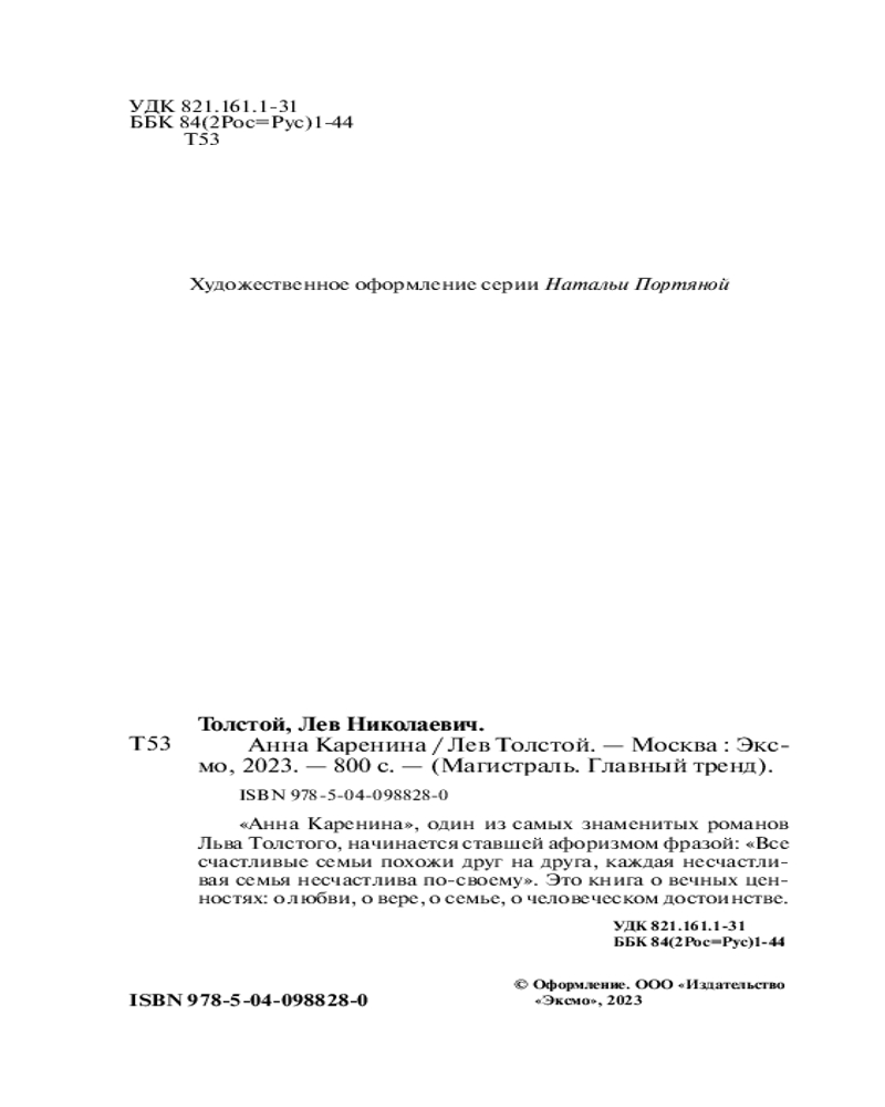 💳 Оплатить за товар можно при получении 🇰🇿 Есть бесплатная доставка по Казахстану от 1 дня 🎁 Копите бонусы с каждой покупки Серия: Магистраль. Главный тренд Лев Николаевич Толстой (1828-1910) называл «Анну Каренину» романом «широким и свободным». Специально отказавшись от следования четкому сюжетному плану, писатель поместил на его страницы одновременно и скандальную историю несчастливого брака главной героини, и социально-философские размышления Константина Левина (своего альтер-эго). |